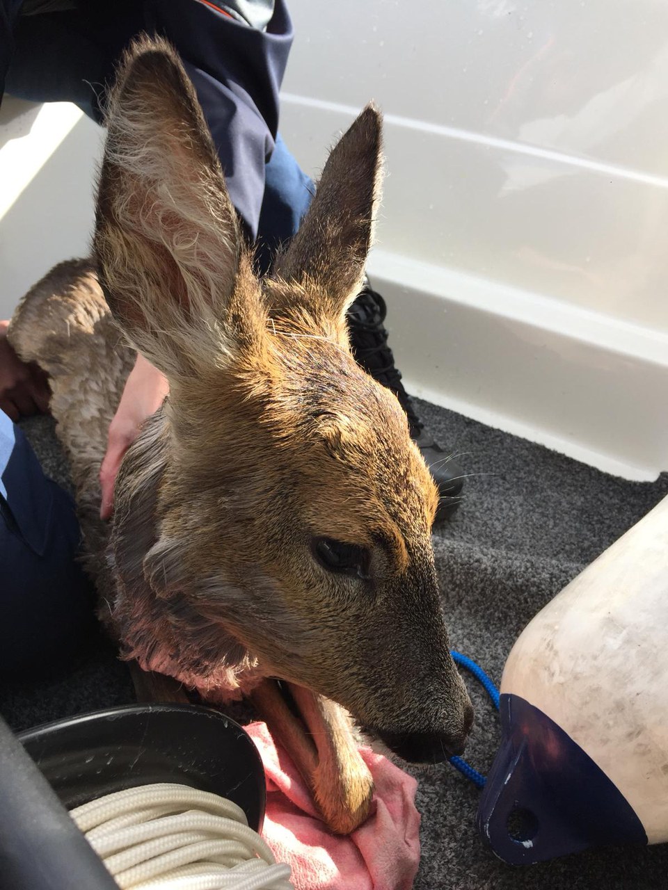 Polizisten hievten daraufhin das einjährige Reh behutsam ins Patrouillenboot und brachten es ans Ufer. Dort untersuchte der Wildhüter das Jungtier. Es war etwas erschöpft und unterkühlt, jedoch nicht verletzt. Der Wildhüter brachte es in den Wald zurück, wo es sich vom Schrecken erholen konnte.