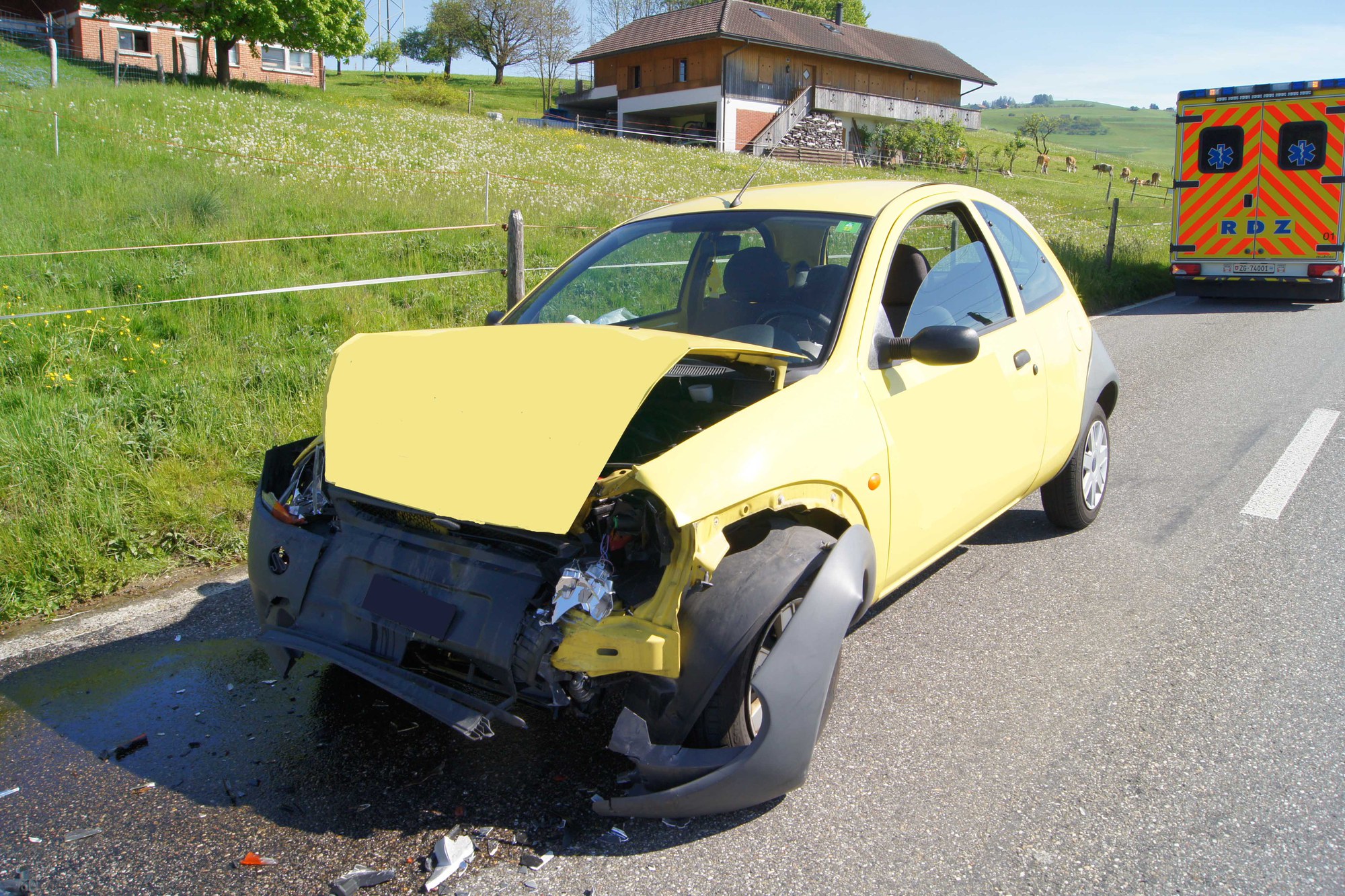 Der erste Unfall ereignete sich am Dienstagnachmittag (10. Mai 2017), um 13:45 Uhr, in Allenwinden. Ein 81-jähriger Autofahrer fuhr auf der Dorfstrasse hinter einem Traktor her und wollte diesen überholen. Gleichzeitig beabsichtigte der 24-jährige Traktorfahrer nach links in die Winzrüti abzubiegen, worauf es zur Kollision kam. Dabei überschlug sich der Personenwagen und kam auf dem Dach liegend zum Stillstand. Verletzt wurde niemand. Das Auto erlitt Totalschaden.
