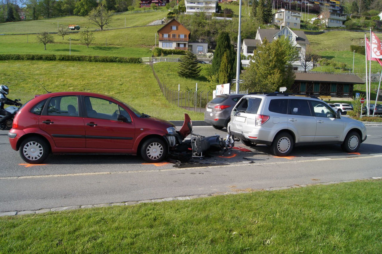 Am Mittwoch (10. Mai 2017), kurz nach 17.00 Uhr, kam es auf der Seestrasse in Unterägeri zu einem Auffahrunfall. Ein 37-jähriger Autolenker bemerkte zu spät, dass ein Auto und ein Motorrad vor einem Fussgängerstreifen angehalten hatten. Er prallte in das Motorrad, das in das Heck des vorderen Autos geschoben wurde. Der Motorradlenker wurde vom Rettungsdienst Zug betreut und zur Kontrolle ins Spital überführt. Wie die Abklärungen ergaben, hatte der 29-Jährige Glück im Unglück und erlitt bei der Kollision nur Prellungen. Beim Unfall entstand Sachschaden von rund 6000 Franken. Während der Sachverhaltsaufnahme musste der Verkehr auf der Seestrasse im Bereich der Unfallstelle kurzzeitig einspurig geführt werden. Im Einsatz standen Mitarbeitende des Rettungsdienstes Zug, eines Abschleppunternehmens sowie der Zuger Polizei.