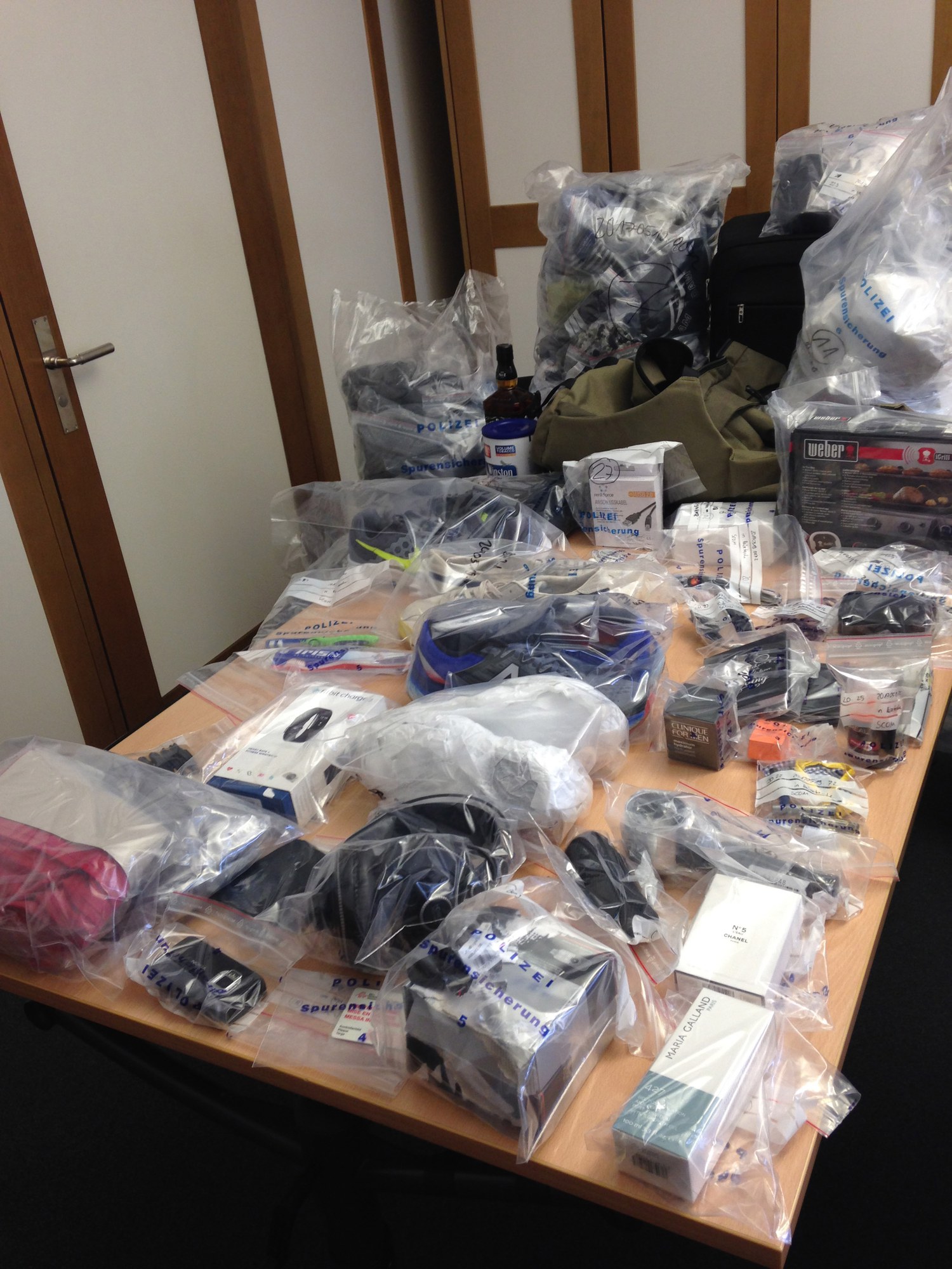 Bei der anschliessenden Hausdurchsuchung trafen die Einsatzkräfte noch auf weiteres Deliktsgut. Die Angebotsvielfalt der angetroffenen Sachen übertraf die Erwartungen bei weitem (von Kleider über Ersatzscheinwerfer für Modellautos bis hin zu einer portablen Nähmaschine). Insgesamt wurde eine Vielzahl an Artikel/Gegenstände sichergestellt.