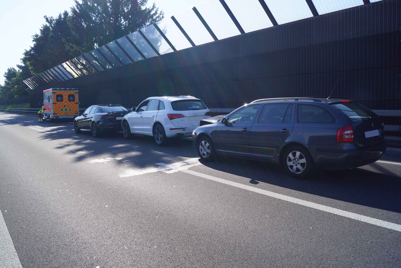 Auf der Autobahn A4a ist es in Fahrtrichtung Sihlbrugg zu einem Auffahrunfall mit drei beteiligten Autos gekommen. Eine Person wurde leicht verletzt.
