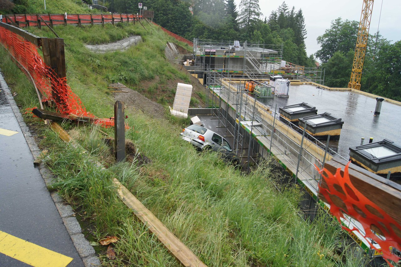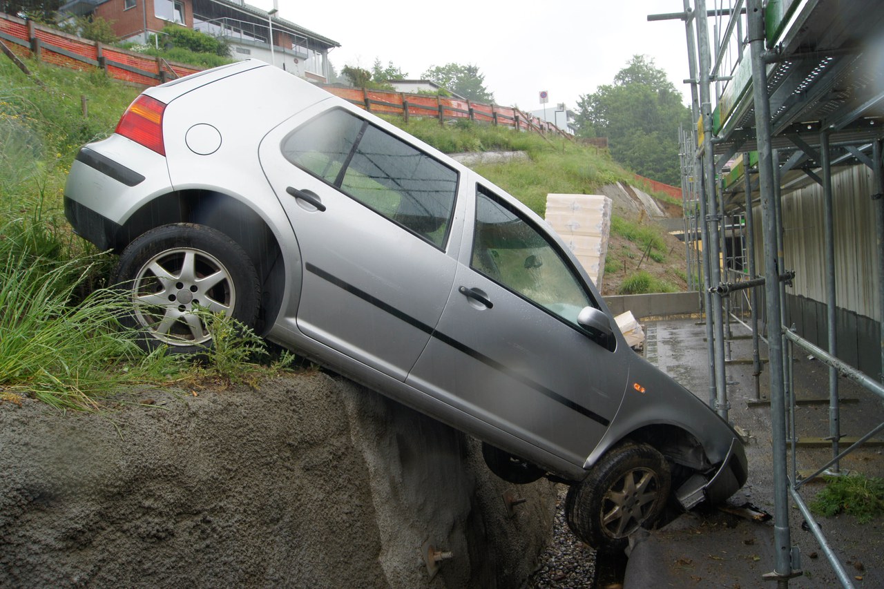 Eine Autolenkerin ist einen Hang hinuntergestürzt. Die Frau wurde leicht verletzt.