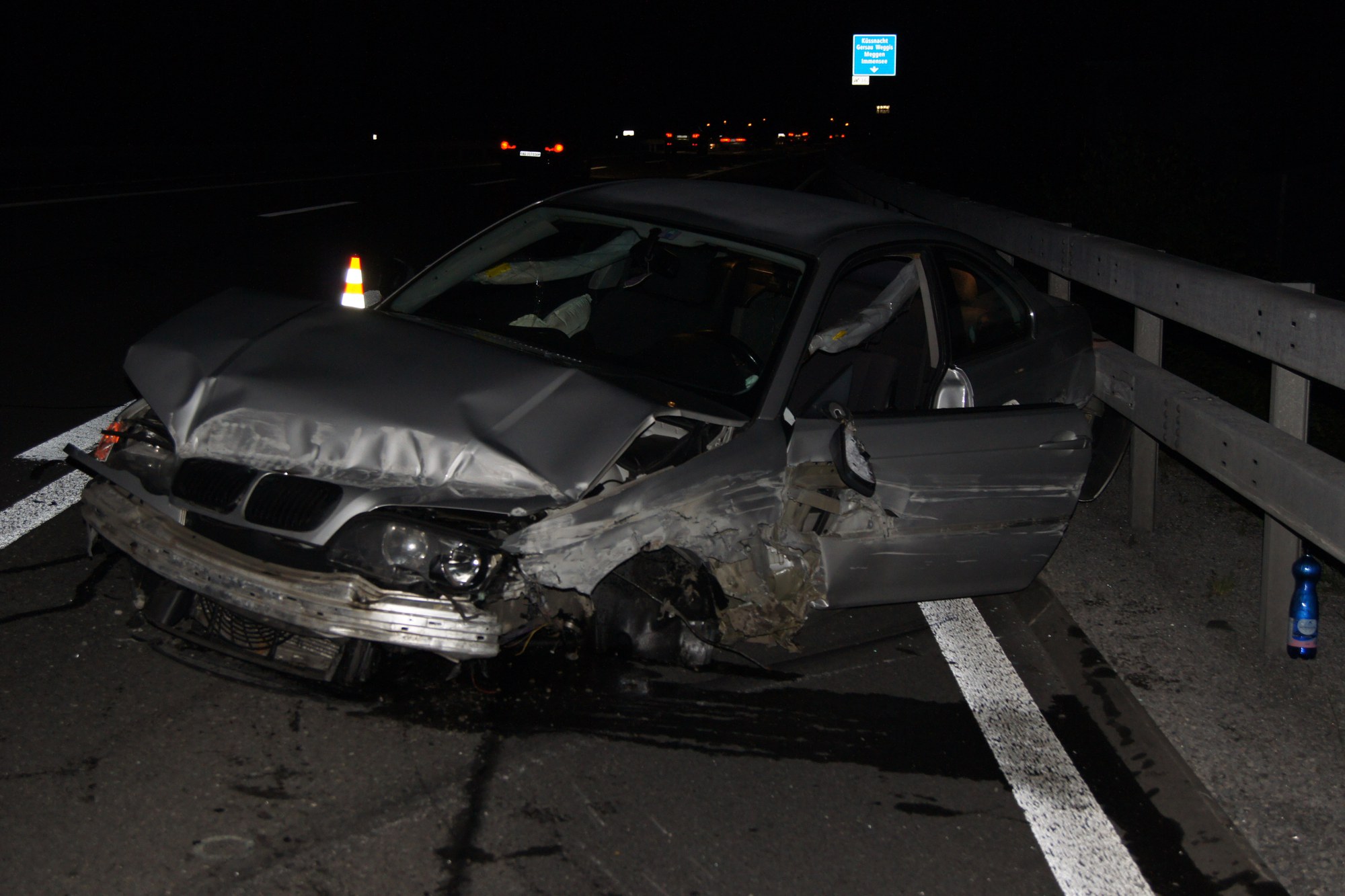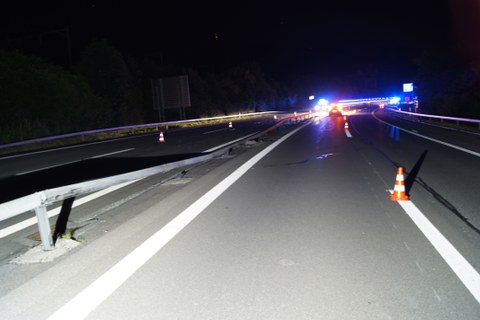 Am Fahrzeug entstand Totalschaden. Ebenfalls wurde die Mittelleitplanke auf einer Länge von ca. 25 Metern komplett zerstört. Der gesamte Sachschaden beträgt mehrere Tausend Franken. Mitarbeitende der Zentras mussten die Leiteinrichtungen in der Nacht wieder instand stellen. Beim Unfallverursacher wurden Alkoholsymptome festgestellt. Die genaue Unfallursache ist Gegenstand weiterer Ermittlungen. Der Verkehr musste während der Unfallaufnahme einspurig geführt werden.
