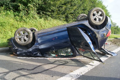 Auf der Autobahn A14 hat sich ein Auto überschlagen. Der Lenker verletzte sich und wurde ins Spital eingeliefert.