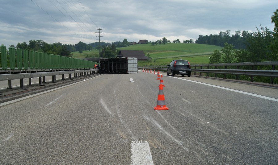 Am Donnerstagmorgen (31. Mai 2012) hat sich auf der Autobahn A4a der Anhänger eines Lieferwagens überschlagen. Erste Ermittlungen zeigen: Das Gefährt war zu schwer.