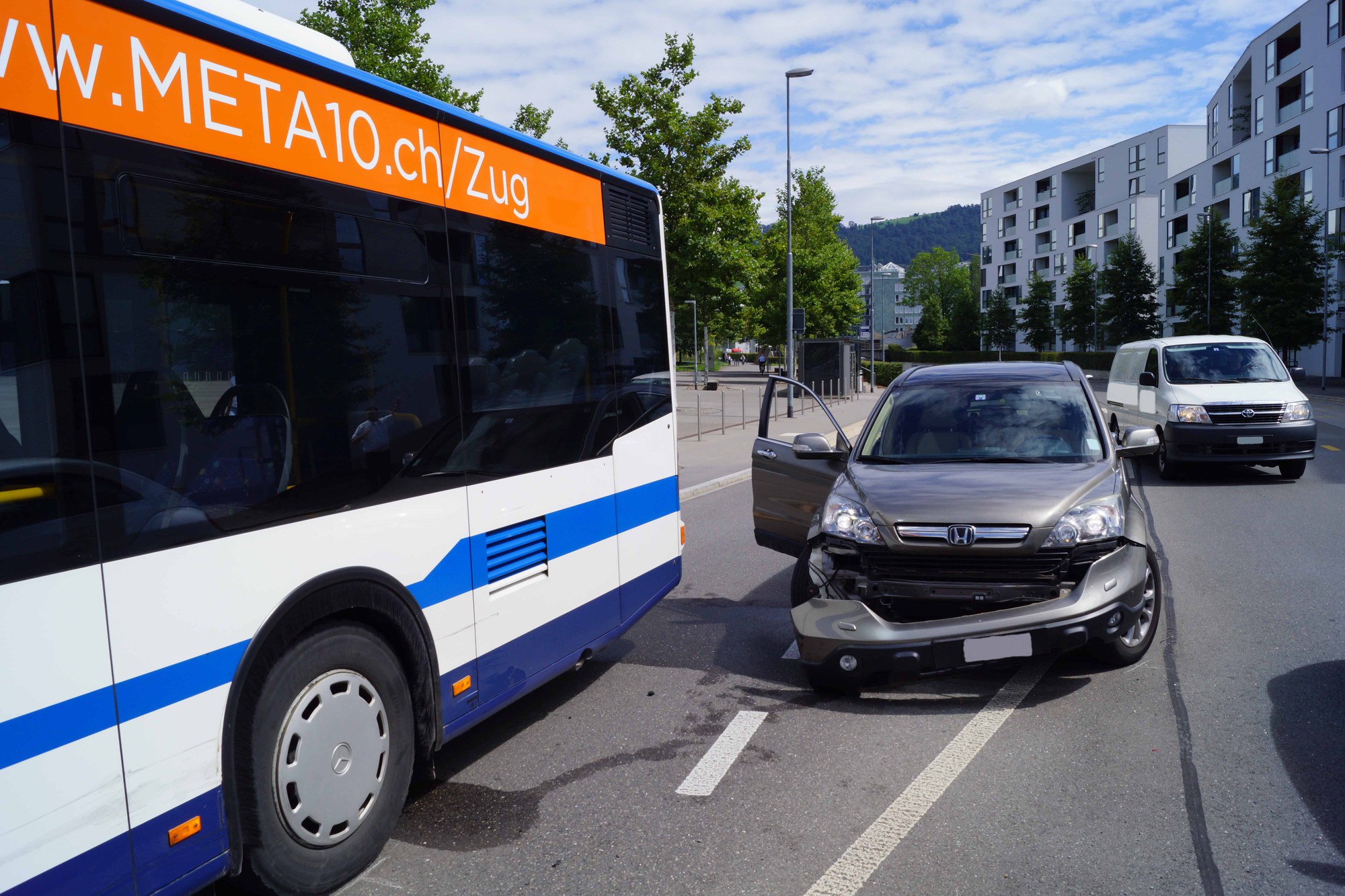Zwischen einem Linienbus der Zugerland Verkehrsbetriebe und einem Personenwagen ist es zu einer Kollision gekommen. Verletzt wurde niemand.