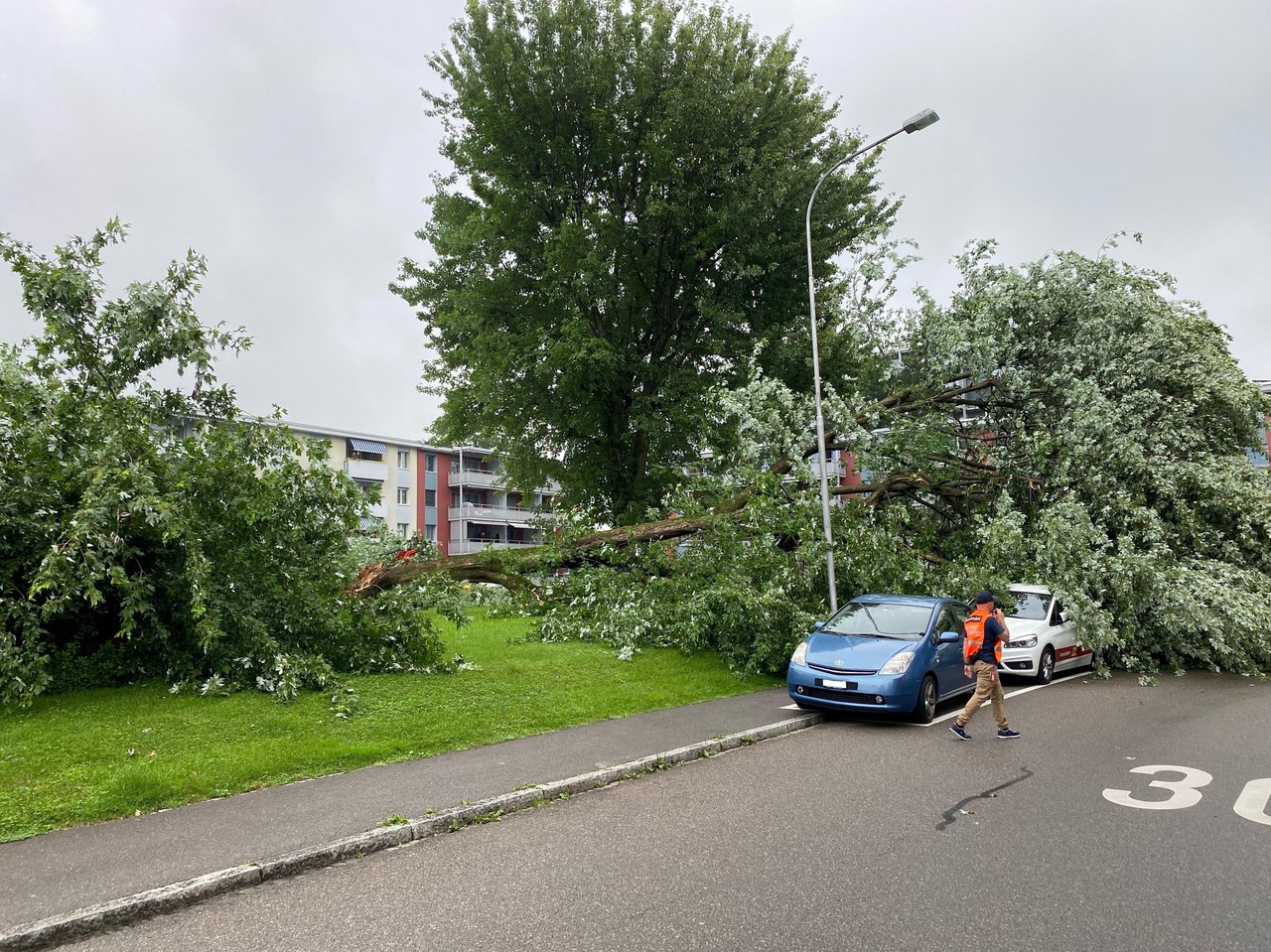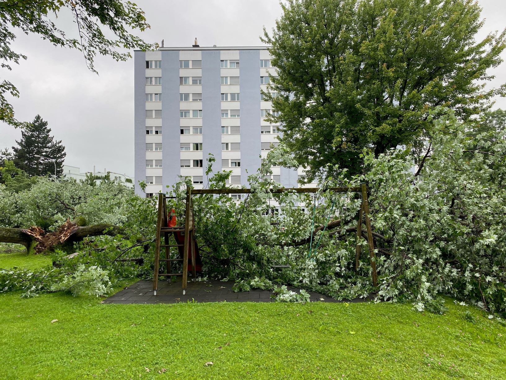 141 / Zug: Baum stürzt auf Spielplatz und Autos