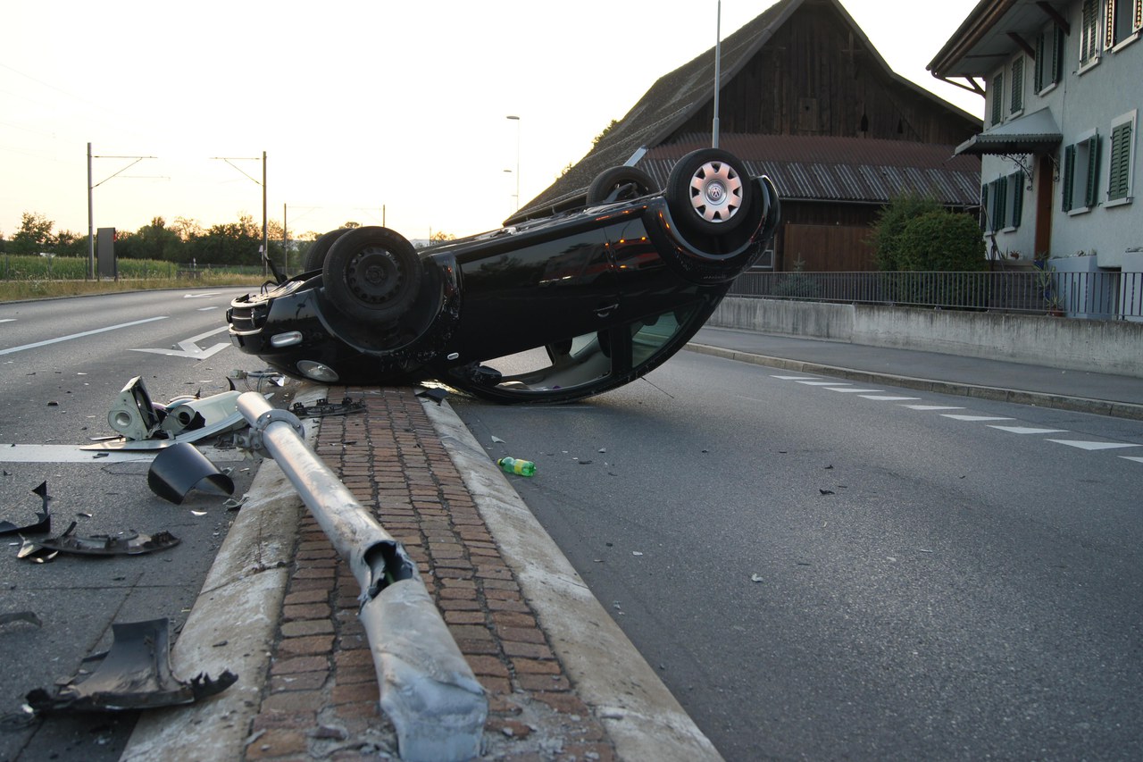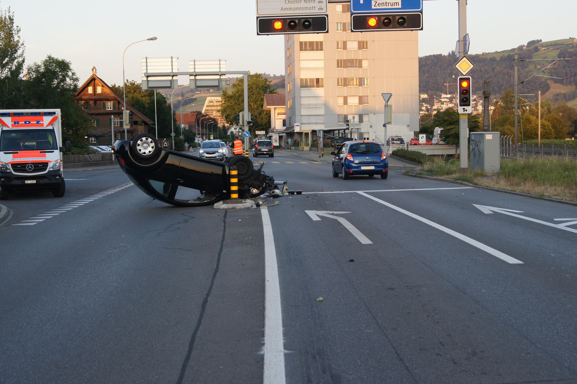 Am Mittwochabend (18. Juli 2018), kurz nach 20:45 Uhr, fuhr eine 23-jährige Autofahrerin auf der Chamerstrasse von Zug kommend Richtung Cham. Bei der Kreuzung Chamer-/Steinhauserstrasse erblickte sie auf dem Chamer Fussweg einen Bekannten und winkte diesem zu. Da sie dadurch abgelenkt war, verlor sie die Kontrolle über ihr Auto und fuhr in die dortige Lichtsignalanlage. Durch den Aufprall wurde das Fahrzeug abgehoben und kam auf dem Dach liegend zum Stillstand.