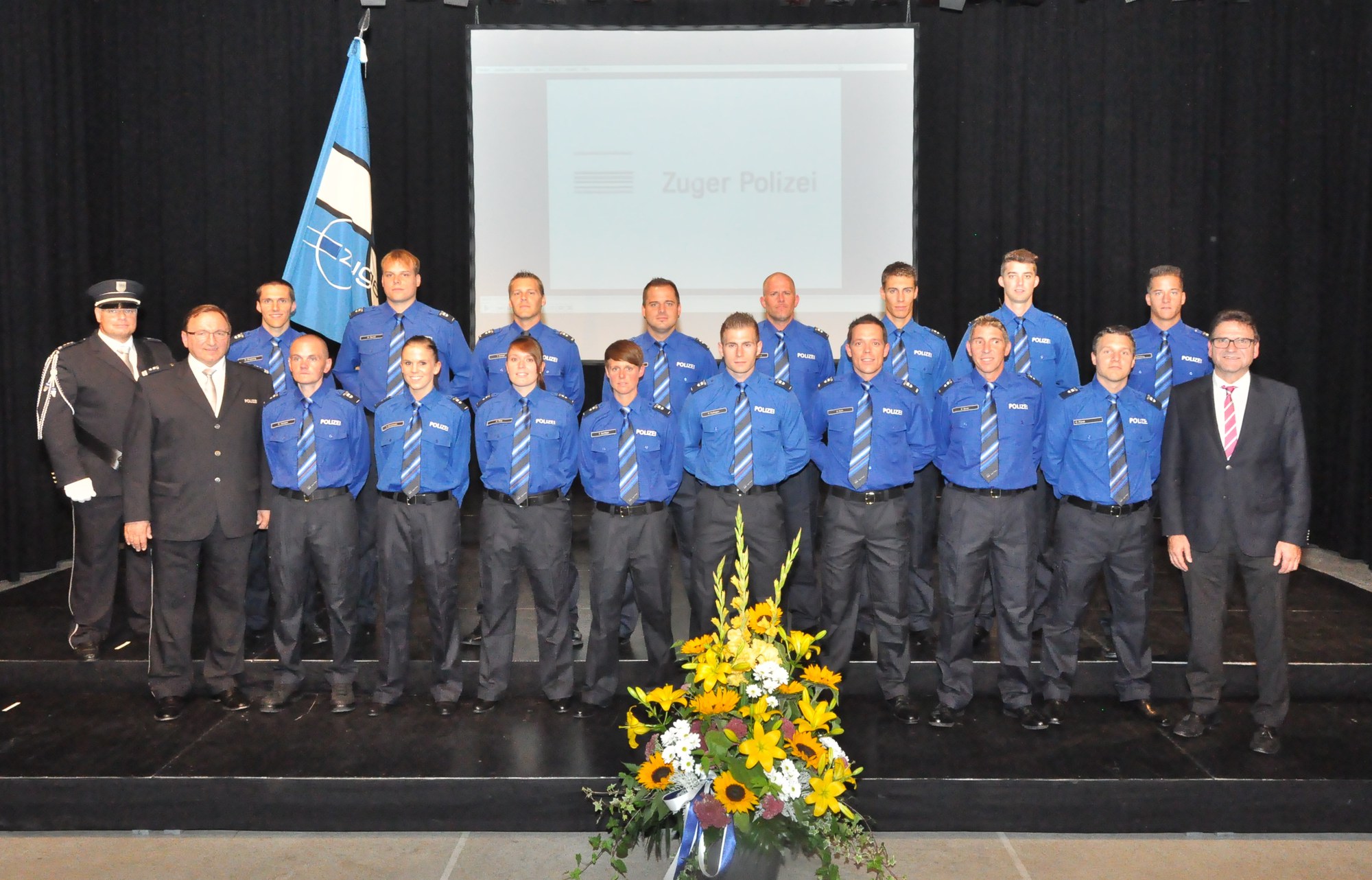 Am Freitagnachmittag (26. September 2014) hat Landammann Beat Villiger 16 Frauen und Männer als neue Zuger Polizeiangehörige in die Pflicht genommen. Die feierliche Zeremonie fand in diesem Jahr in Zug statt.