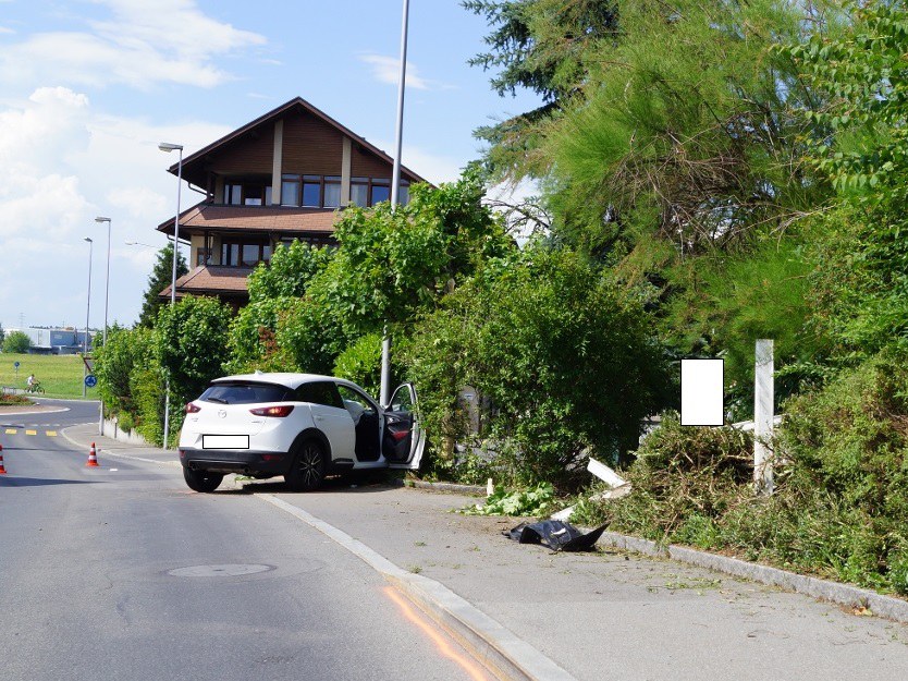 Am Fahrzeug entstand Totalschaden. Der am Abgrenzungszaun, an der Hecke, am Baum und am Beleuchtungskandelaber entstandene Sachschaden lässt sich noch nicht beziffern. Während der Sachverhaltsaufnahme durch die Polizei war die Holzhäusernstrasse im Unfallbereich nur einspurig befahrbar.