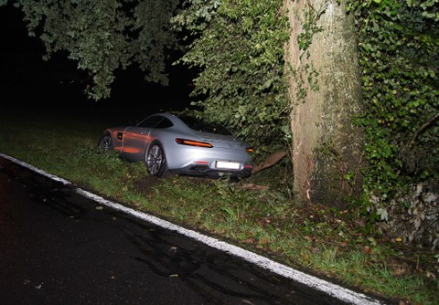 Der Unfall ereignete sich am Sonntagabend (4. September 2016), kurz nach 23:00 Uhr, auf der Steinhauserstrasse zwischen Steinhausen und Baar. Laut Aussagen des 25-jährigen Lenkers musste er, um eine drohende Kollision zu verhindern, einem entgegenkommenden Fahrzeug ausweichen. Dabei geriet er an den rechten Fahrbahnrand, hob kurz ab, landete wieder auf der Strasse und setzte seine Fahrt fort. Nach weiteren rund 100 Metern fuhr der 25-Jährige rechts in die Wiese, touchierte einen Baum und kam zum Stillstand. Verletzt wurde niemand. Es entstand Sachschaden von rund 20'000 Franken.
