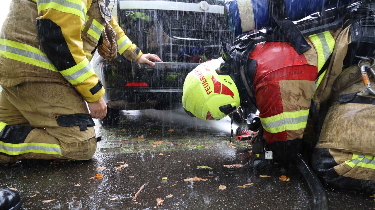 Ein Polizist, der zu diesem Zeitpunkt ganz in der Nähe war, wurde auf den Vorfall aufmerksam und eilte dem Autofahrer mit einem Feuerlöscher zu Hilfe. Angehörige der Freiwilligen Feuerwehr der Stadt Zug (FFZ) löschten den Glimmbrand und kühlten die Fahrzeugunterseite.