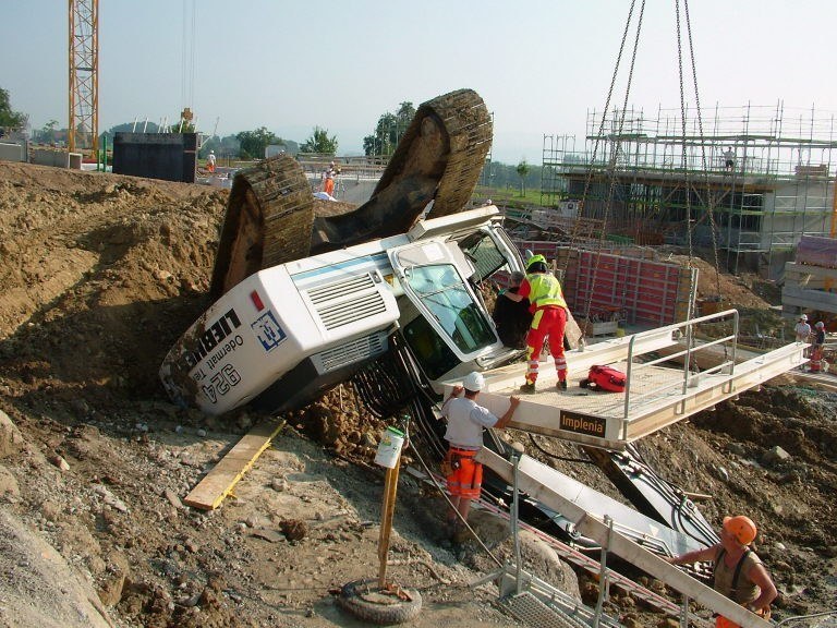 164 / Risch: Umgestürzter Bagger - Lenker verletzt