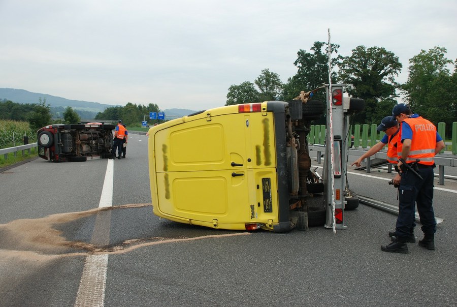 | 173 / Baar: Anhänger überschlägt sich auf Autobahn | Dokument |