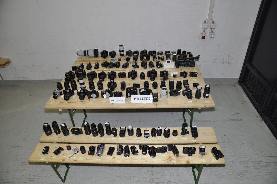 Die Polizei stellte das Deliktsgut, 121 Fotokameras und Objektive im Wert von rund 100'000 Franken, sicher. Mit dem Einschlagen der Eingangstüre und der Vitrinen verursachten die Männer einen Sachschaden von rund 15'000 Franken.