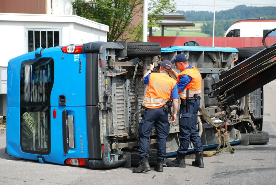 | 180 / Baar: Kollision mit Lastwagen - Lieferwagen kippt zur Seite | Dokument |