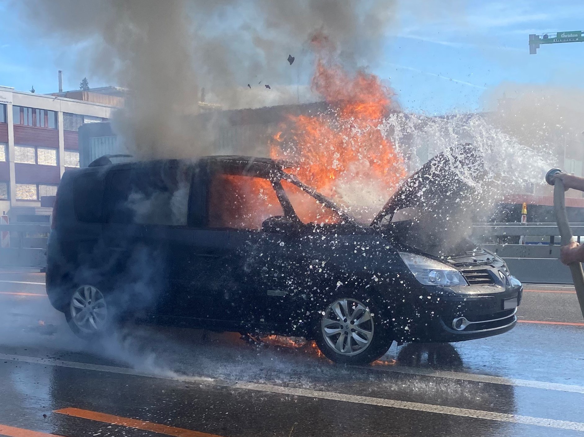 Während der Fahrt ist in einem Auto ein Brand ausgebrochen. Verletzt wurde niemand, am Fahrzeug entstand Totalschaden. Es steht ein technischer Defekt im Vordergrund.
