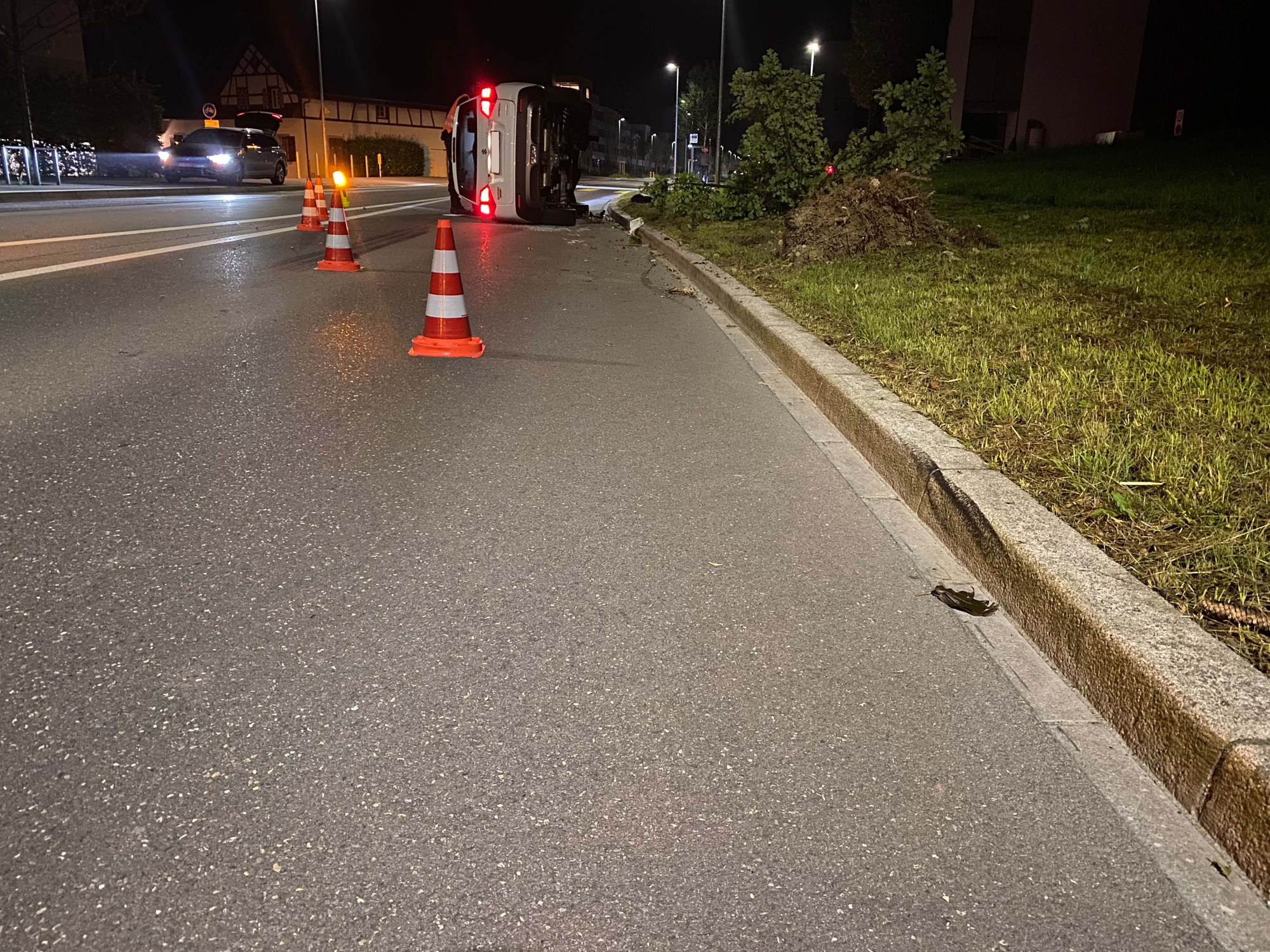 Eine Autofahrerin ist von der Strasse abgekommen, in einen kleinen Baum geprallt und auf der Seite liegend zum Stillstand gekommen. Verletzt wurde niemand.