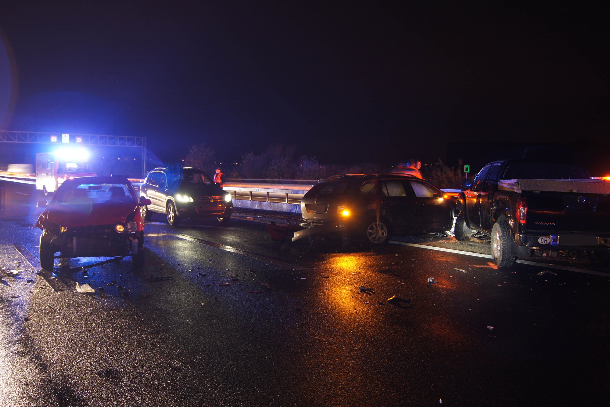 Durch den Aufprall wurde die Mittelleitplanke auf die Gegenfahrbahn verschoben. Zwei Fahrzeuge, die in Fahrtrichtung Luzern unterwegs waren, wurden dadurch ebenfalls beschädigt.