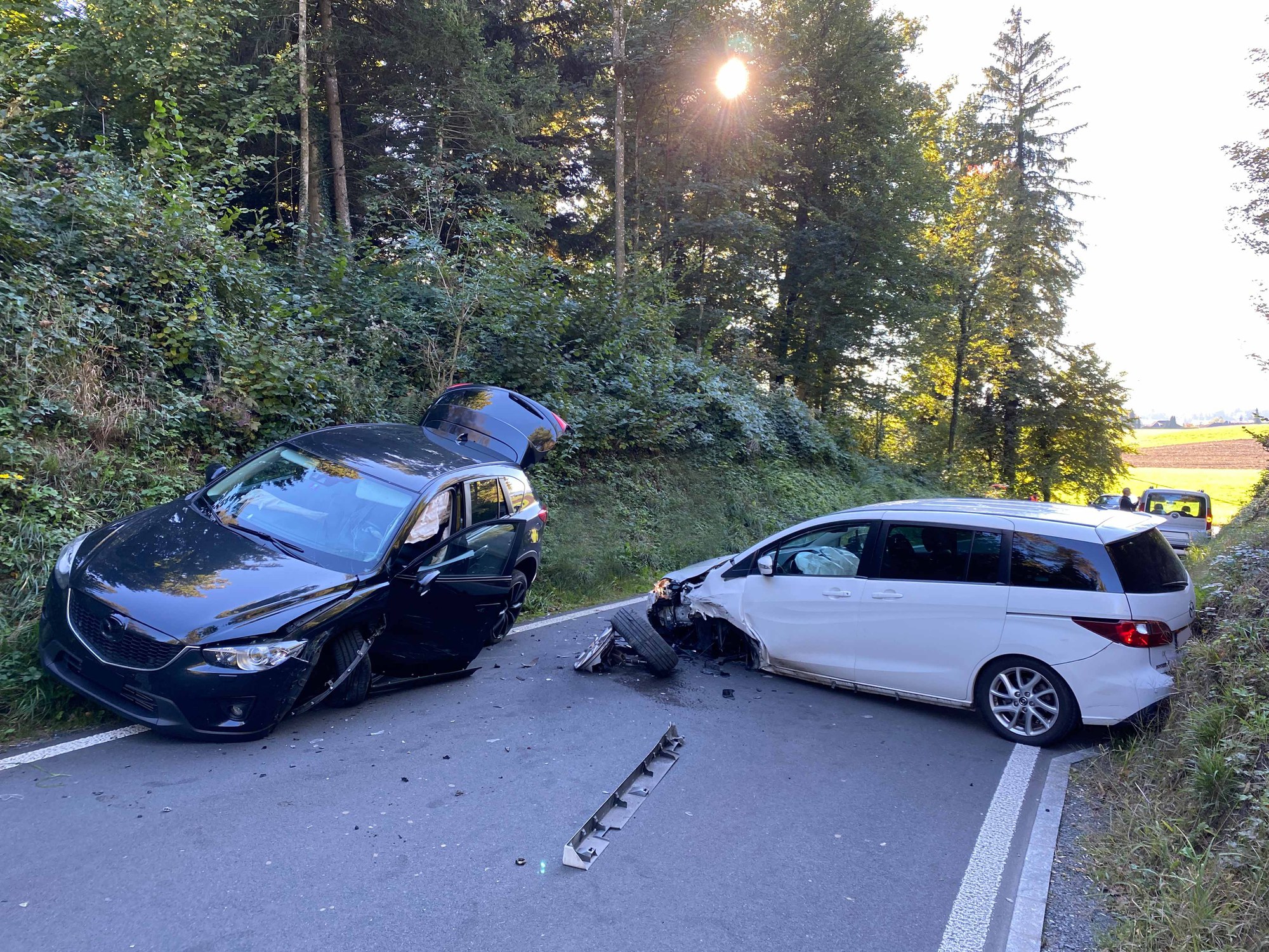 Der Unfall ereignete sich am Mittwochnachmittag (5. Oktober 2022), kurz vor 16:45 Uhr. Aus noch nicht bekannten Gründen ist es auf Höhe Zimbelwald zu einer seitlich-frontalen Kollision zwischen zwei Autos gekommen. Die beiden 41- und 54-jährigen Fahrzeuglenkerinnen wurden dabei verletzt. Nach der medizinischen Erstversorgung durch den Rettungsdienst Zug wurden sie ins Spital eingeliefert.