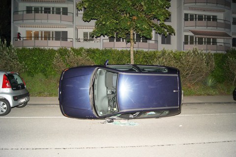 219 / Steinhausen: Vier Burschen kippen parkiertes Auto um
