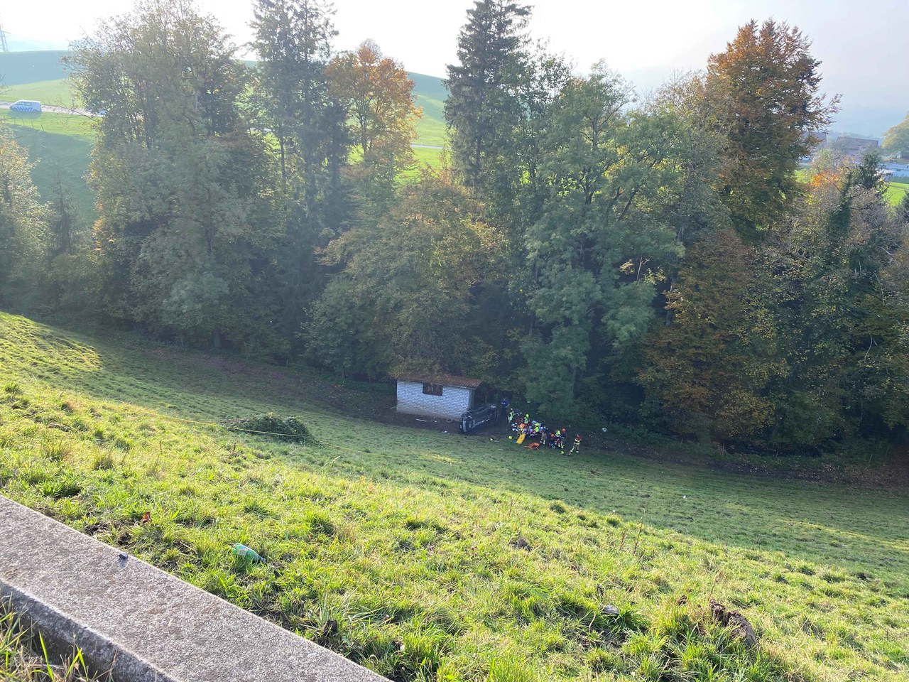 Am Mittwoch (19. Oktober 2022), kurz nach 16:15 Uhr, ist auf der Einsatzleitzentrale der Zuger Polizei die Meldung eingegangen, dass sich in Edlibach (Gemeinde Menzingen) ein Auto überschlagen habe. Als die Einsatzkräfte am Unfallort eintrafen, fanden sie das Auto rund 70 Meter neben der Strasse am Waldrand.