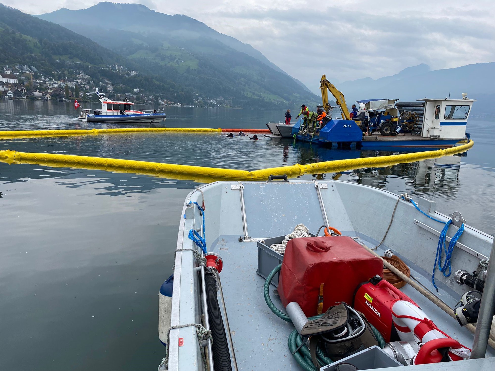 An der Bootsbergung beteiligt waren weiter auch Mitarbeitende vom Amt für Wald und Wild mit einer schwimmenden Plattform und der Wasserwerke Zug mit einer Seilwinde. Angehörige der Stützpunktfeuerwehr Zug (FFZ) stellten während der Bergung mit einer Ölsperre sicher, dass austretendes Öl und Benzin aufgefangen werden konnte, um eine Gewässerverschmutzung zu verhindern. Zudem pumpten sie das Wasser aus dem Boot ab, um dieses bergen zu können. Für den Abtransport hievte ein Kran einer privaten Baufirma das Boot auf einen Bootstrailer. Die Lokalisierung und die Bergung des vermissten Bootsführers und des Bootes stellten die Spezialisten der beteiligten Seepolizei aus den Kantonen Genf, Zürich und Zug sowie die Taucher der Kantonspolizei Schwyz vor eine sehr grosse Herausforderung. Die Ursache für den Untergang des Boots ist nach wie vor nicht bekannt und Gegenstand der laufenden Abklärungen durch die Staatsanwaltschaft.