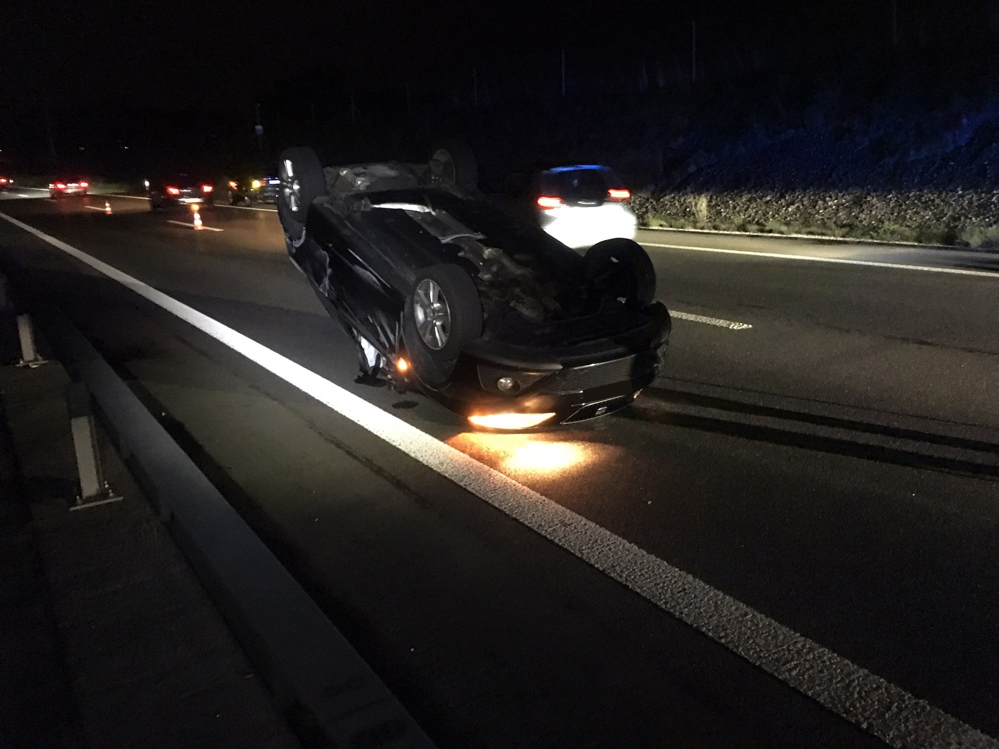 Für die Bergung des auf dem Dach liegenden Autos musste die Autobahn kurzzeitig gesperrt werden.