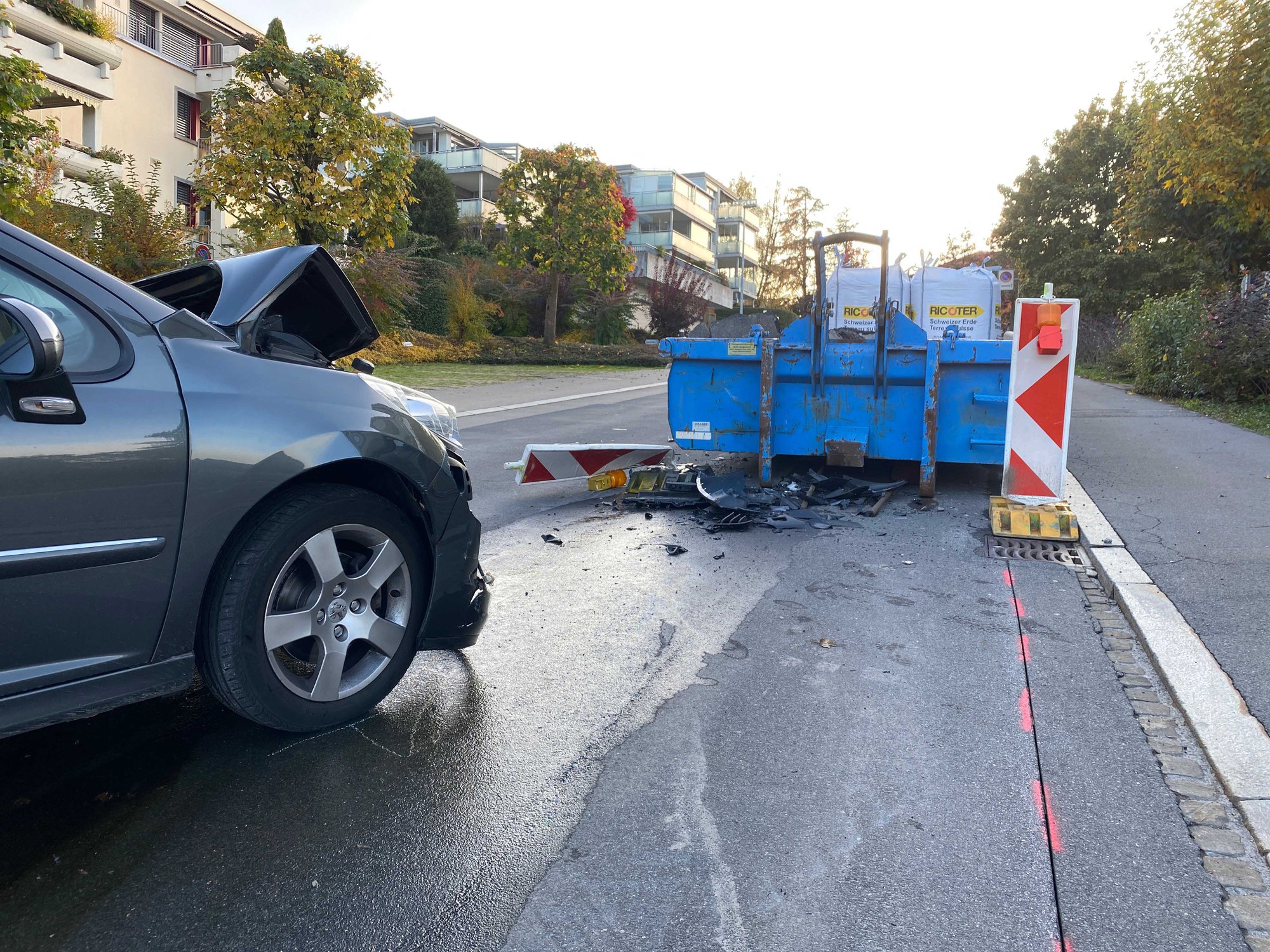 Eine 76-jährige Autofahrerin verursachte am Samstagabend (24. Oktober 2020), um 17:15 Uhr, auf der Lüssirainstrasse in der Stadt Zug einen Selbstunfall. Die Lenkerin wurde nach eigenen Angaben von der Sonne geblendet und fuhr deshalb frontal in eine auf der Strasse stehende Abrollmulde.
