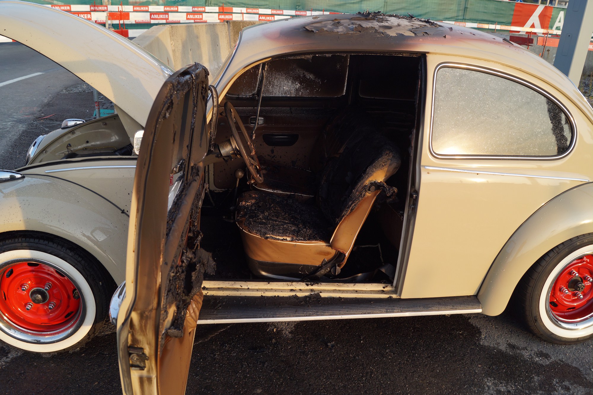 Am Samstagabend (14. September 2019), kurz nach 18:30 Uhr, fuhr ein Fahrzeuglenker mit seinem VW Käfer in Baar auf der Zugerstrasse dorfeinwärts. Bei der Lichtsignalanlage zur Südstrasse hielt er an und stellte im Rückspiegel Rauch fest. Als er ausstieg, sah er, dass bereits Flammen aus dem hinteren rechten Teil seines Fahrzeugs loderten.