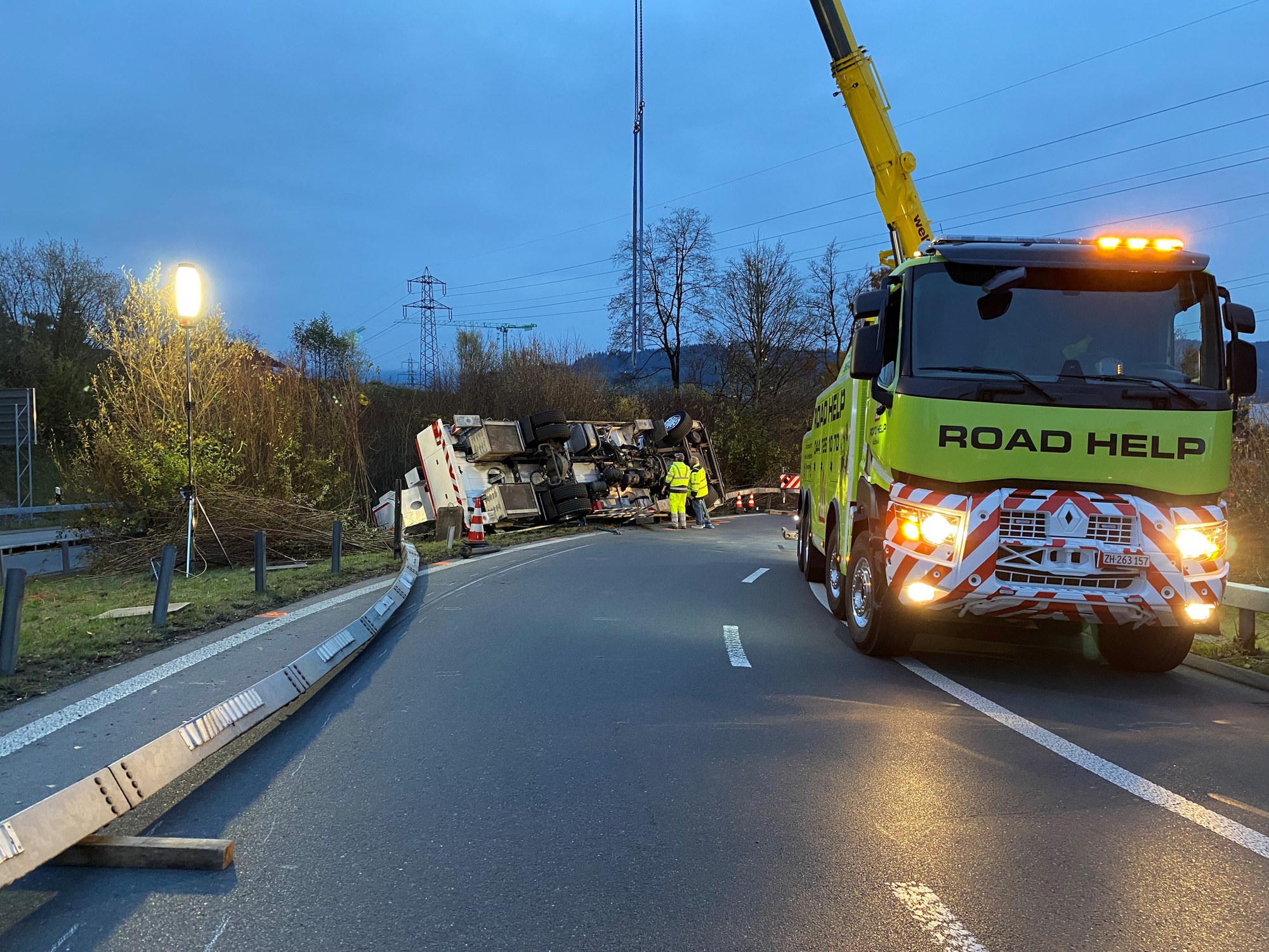 Bei dem Verkehrsunfall wurden die Leiteinrichtungen in der Einfahrt auf der linken Seite stark beschädigt. Der Sachschaden am Lastwagen und den Leiteinrichtungen beläuft sich auf mehrere Hunderttausend Franken. Die Zufahrt auf die Autobahn musste für die Bergung des Lastwagens und die Instandstellung der Leiteinrichtungen für mehrere Stunden gesperrt werden.