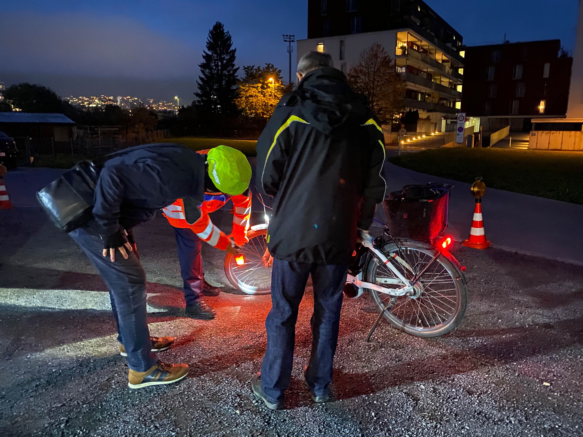 Am Donnerstagabend (3. November 2022) lag der Fokus der Beleuchtungskontrolle auf den Zweiradlenkenden sowie den Fussgängern. Am Schleifeweg in der Stadt Zug wurden rund 100 E-Trotti, Velo - und E-Bike-Fahrer kontrolliert. Bei sieben Zweiradlenkenden war die Beleuchtung mangelhaft oder nicht vorhanden. Wenn möglich wurde das Licht vor Ort repariert oder ersetzt. Gleichzeitig wurden alle Zweiradlenkenden auf die Thematik «Sichtbarkeit» sensibilisiert.
