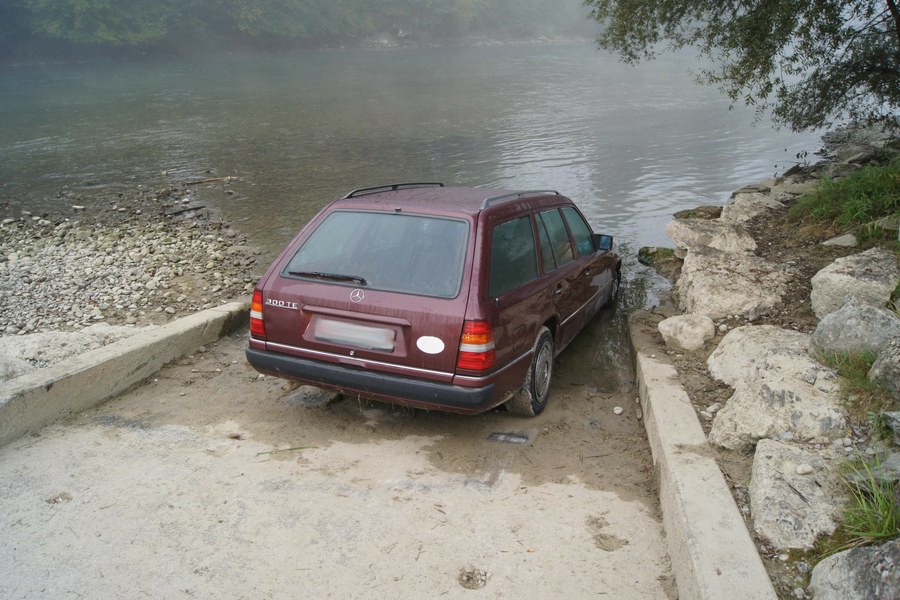 Ein 42-jähriger Mann verlor auf der Heimfahrt die Orientierung und landete mit seinem Auto beinahe im Fluss. Er war alkoholisiert.