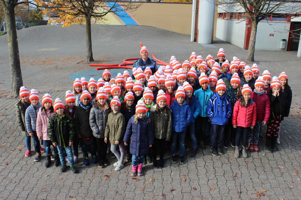 Um die Sicherheit der Schülerinnen und Schüler zu verbessern, verteilen die Verkehrsinstruktoren der Zuger Polizei in diesem Jahr an alle 2. Klässler im Kanton Zug reflektierende Pylonis-Mützen. Diese sollen dazu beitragen, dass die Schüler den Schulweg bei Dunkelheit sicher bewältigen können.