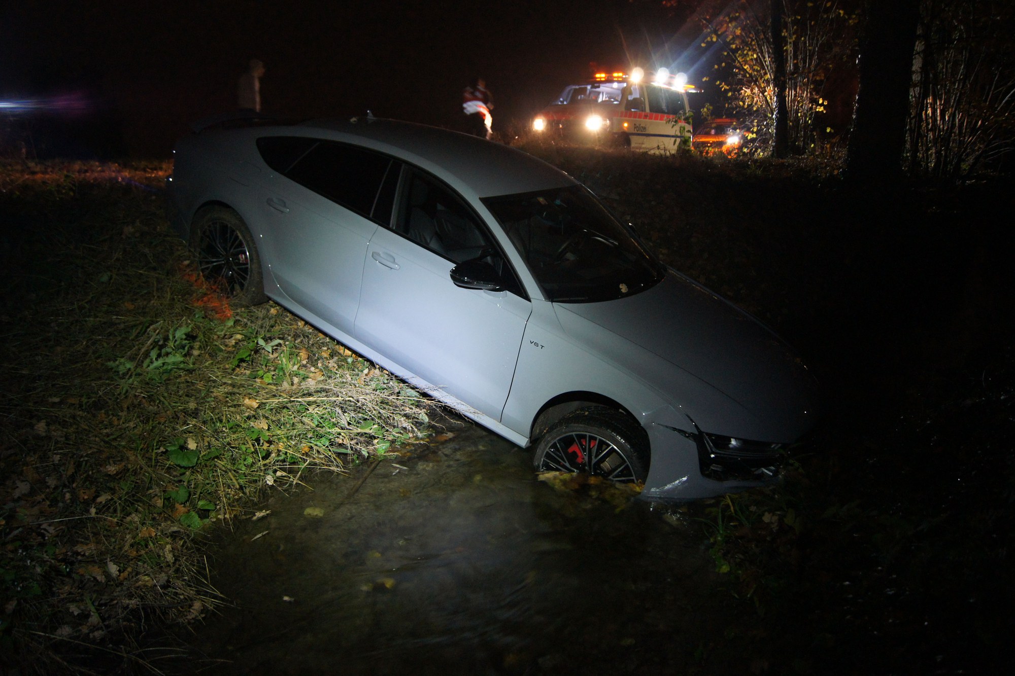 Ein Junglenker ist mit seinem Auto von der Strasse abgekommen und im Bach gelandet. Verletzt wurde niemand, der Sachschaden beträgt einige Tausend Franken.