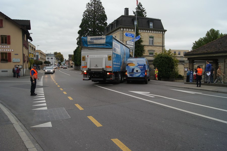 Am Mittwochmorgen (12. Oktober 2011), um 09:15 Uhr, kam es auf der Zugerstrasse beim Gasthaus Krone zu einer Kollision. Ein Lastwagen sowie ein nachfolgender Lieferwagen fuhren vom Kreisel Sinser-/Zugerstrasse in Richtung Alpenblick. Auf der Höhe der Knonauerstrasse wollte der 51-jährige Lastwagenfahrer rechts abbiegen. Aufgrund der engen Platzverhältnisse musste dieser nach links ausholen. Der hinter ihm fahrende Lieferwagenfahrer realisierte dies nicht und fuhr rechts am Lastwagen vorbei weiter gerade aus. Als er auf der Höhe des Lastwagens war, kam es zur seitlichen Kollision. Dabei wurde der Lieferwagen massiv beschädigt und der Lastwagen prallte frontal in eine Mauer und einen Kandelaber. Bei dem Zusammenstoss wurde der Lieferwagenfahrer leicht verletzt. Der 25-Jährige wurde vom Rettungsdienst Zug zur Kontrolle ins Spital gebracht. An den beiden Fahrzeugen und der Infrastruktur entstand ein Sachschaden von rund 40'000 Franken. Aufgrund des Unfalls war der Verkehrsfluss auf der Zugerstrasse während rund einer Stunde beeinträchtigt.