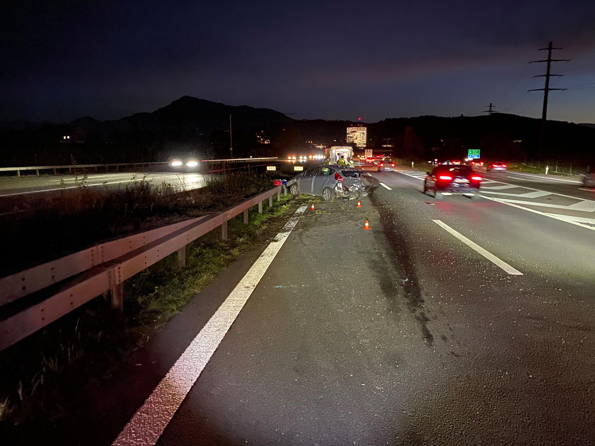 Am Mittwochabend (16. November 2022), kurz vor 17:00 Uhr, ist es auf der Autobahn A14, bei der Verzweigung Rütihof in Fahrtrichtung Luzern, zu einer Auffahrkollision gekommen. Ein 51-jähriger Fahrzeuglenker realisierte zu spät, dass sich der Verkehr vor ihm staute und prallte heftig in das Fahrzeugheck eines 29-jährigen Autofahrers. Dieses Fahrzeug wiederum wurde noch leicht gegen die Mittelleitplanke geschoben.