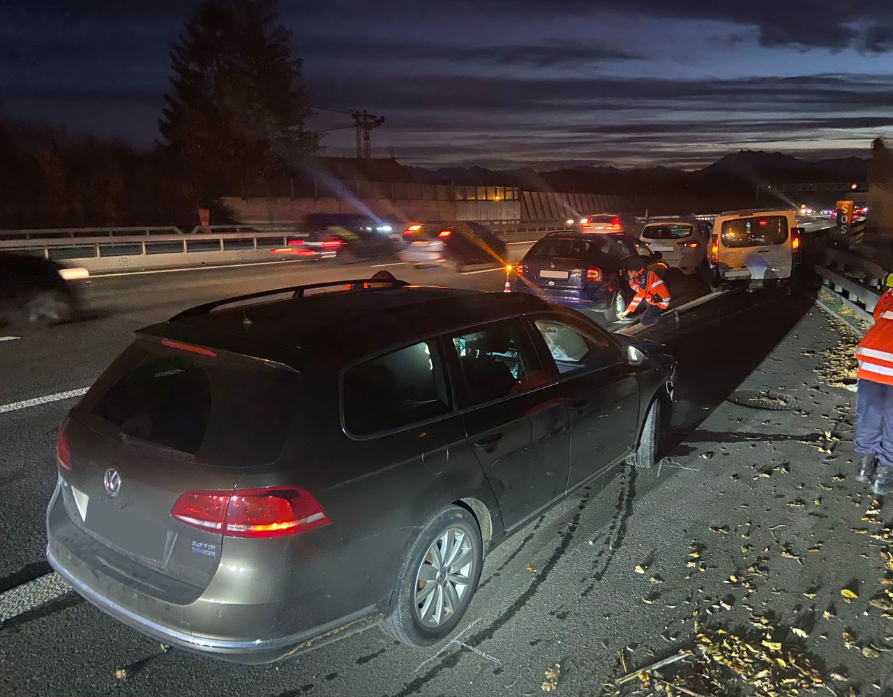 Auf der Autobahn ist es zu einem Unfall mit vier involvierten Fahrzeugen gekommen. Zwei Personen mussten zur Kontrolle ins Spital eingeliefert werden.