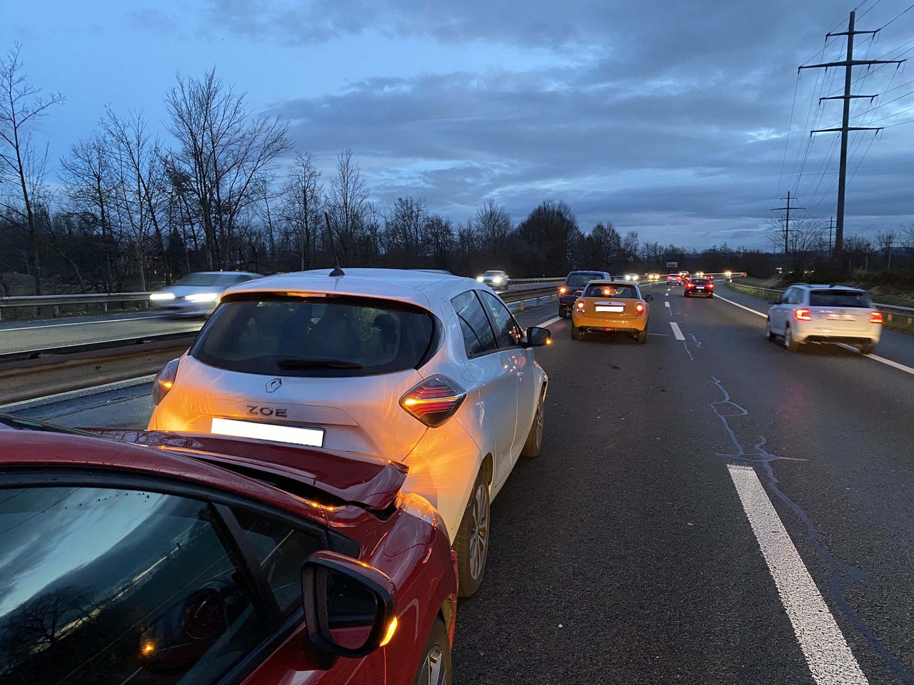 Am Donnerstag (2. Dezember 2021), kurz nach 07:00 Uhr, ereignete sich auf der Autobahn A14, zwischen Gisikon/LU und Rotkreuz, in Fahrtrichtung Zug/Zürich, ein Auffahrunfall mit vier beteiligten Fahrzeugen. Ein 22-jähriger Fahrzeuglenker bemerkte, dass die Fahrzeuge vor ihm auf der Überholspur stark verlangsamten und begann ebenfalls zu bremsen. Eine 23-jährige ihm nachfolgende Lenkerin bemerkte dies zu spät und prallte in das Auto des 22-Jährigen. Gleich wie der 23-jährigen Lenkerin erging es zwei 33- und 54-jährigen Lenkerinnen, die mit ihren Fahrzeugen ebenfalls auf der Überholspur fuhren und an der Auffahrkollision beteiligt waren. Eine Frau wurde bei dem Auffahrunfall leicht verletzt. Sie wurde vor Ort durch Mitarbeitende des Rettungsdienstes Zug betreut. Der entstandene Sachschaden ist erheblich. Drei der vier beteiligten Fahrzeuge mussten von einem privaten Abschleppunternehmen abtransportiert werden. Der Unfall führte im Morgenverkehr zu Behinderungen.