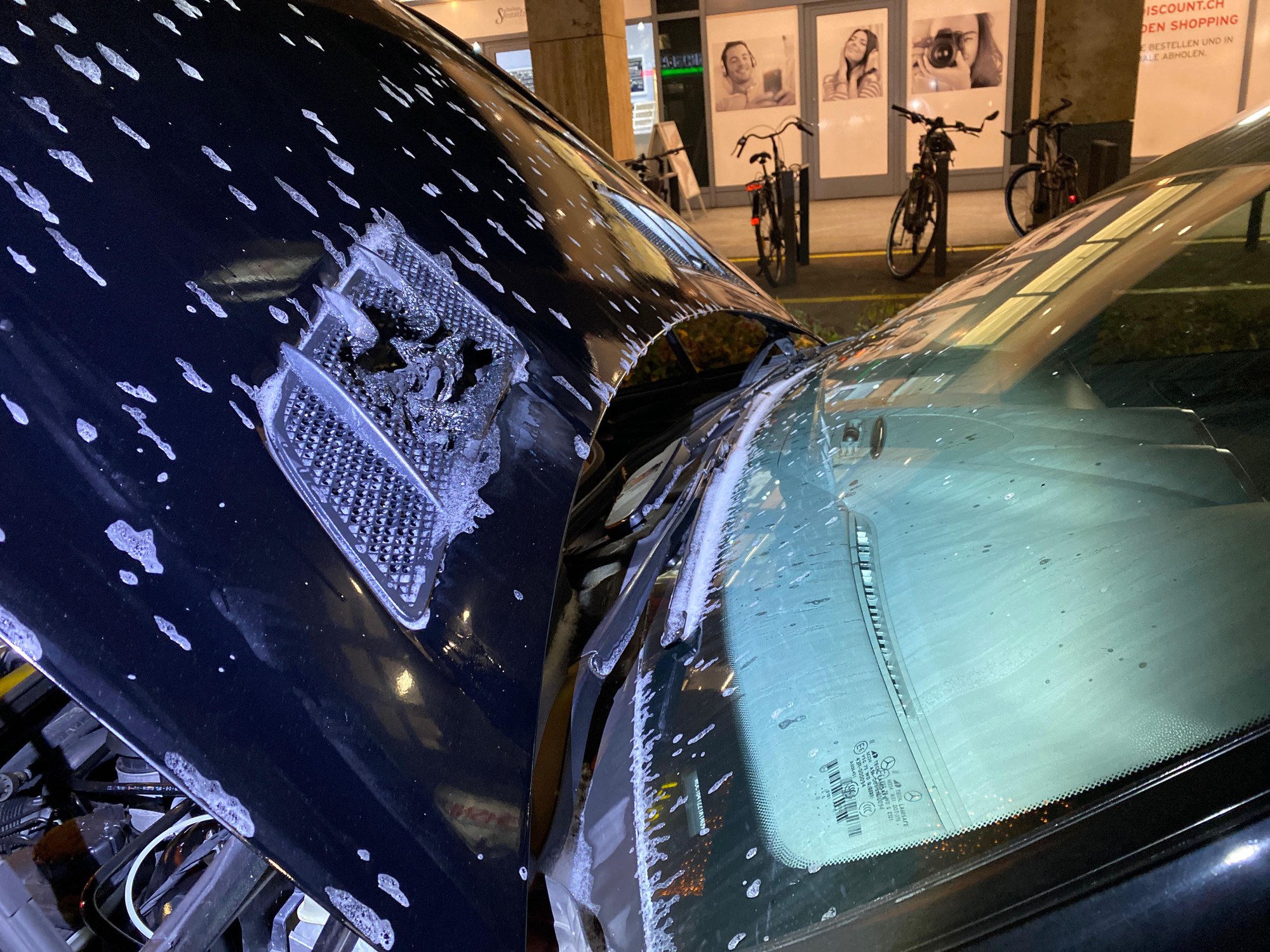 Gemäss den ersten Abklärungen vor Ort ist das Lüftungsgitter des Autos in Brand geraten. Im Vordergrund steht ein technischer Defekt.
