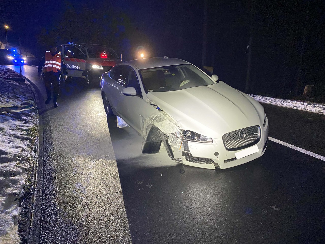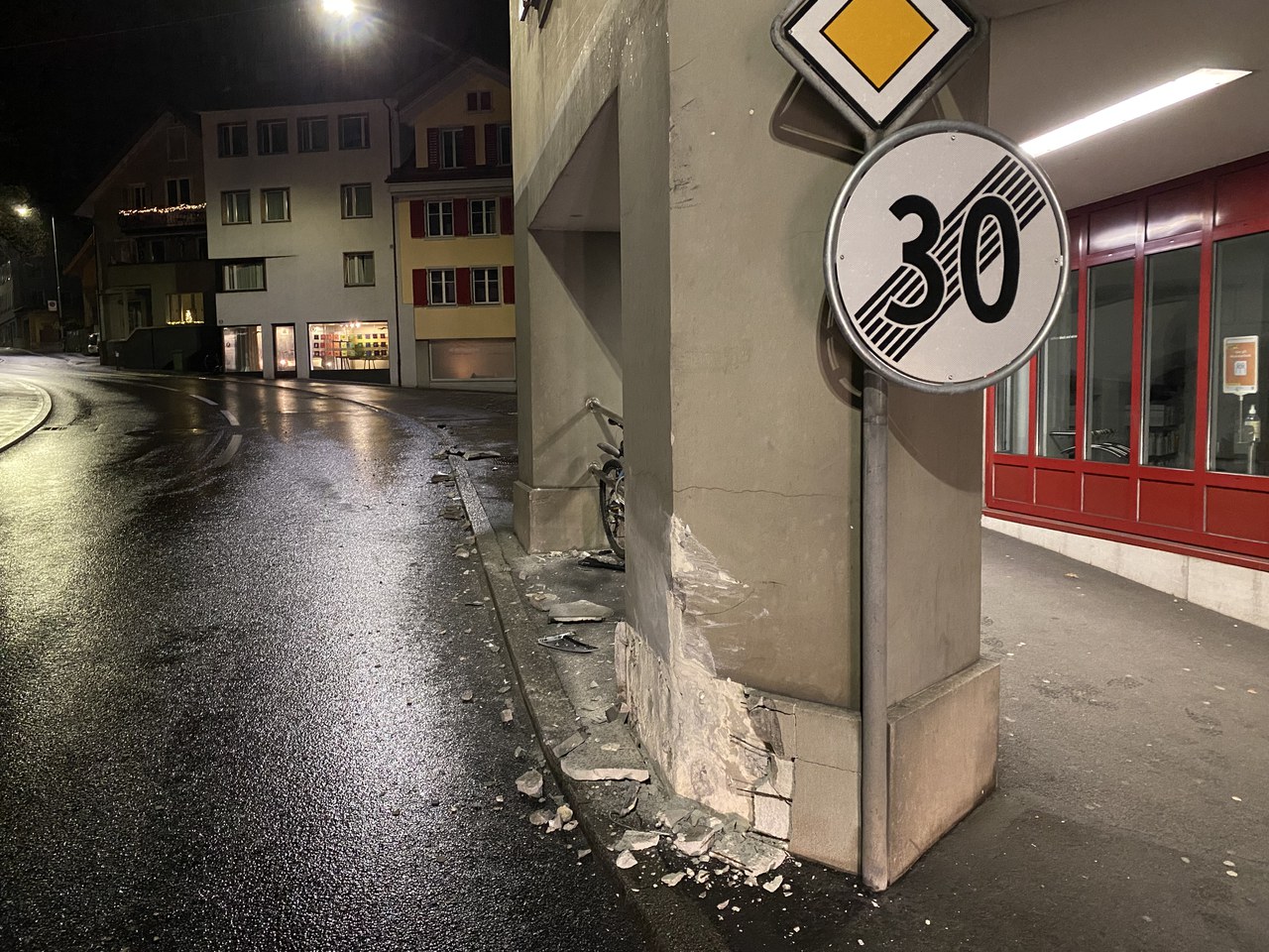 Am frühen Mittwochmorgen (8. Dezember 2021), kurz nach 02:00 Uhr, ist eine Autolenkerin auf der Ägeristrasse in Zug, in einer Verengung oberhalb des Kolinplatzes, in eine Haussäule geprallt. Dabei wurde das rechte Vorderrad ihres Autos stark beschädigt. Die Unfallverursacherin wurde vorerst von einem Passanten an der Weiterfahrt gehindert. Noch bevor eine Polizeipatrouille vor Ort war, gelang ihr die Flucht von der Unfallstelle. Quasi auf drei Rädern und funkensprühend fuhr die 45-Jährige auf der Ägeristrasse bergwärts. Eingangs Menzingen hatte eine Polizeipatrouille zu ihr aufgeschlossen. Die Lenkerin regierte jedoch weder auf Blaulicht und Horn noch auf die eingeschaltete Matrix "Stop Polizei". Statt anzuhalten fuhr sie einfach weiter. Kurz vor der Strafanstalt Bostadel konnte eine zweite Polizeipatrouille das beschädigte Auto überholen und die Lenkerin zum Anhalten bewegen. Der Pikett-Staatsanwalt ordnete bei ihr eine Blut- und Urinprobe im Spital an. Der Führerausweis wurde der fehlbaren Lenkerin zuhanden der Administrativbehörde (Strassenverkehrsamt) abgenommen. Der Sachschaden beträgt rund 20'000 Franken. Das Auto musste von einem privaten Abschleppunternehmen abtransportiert werden. Der Unterhaltsdienst stand für die Fahrbahnreinigung ebenfalls im Einsatz.