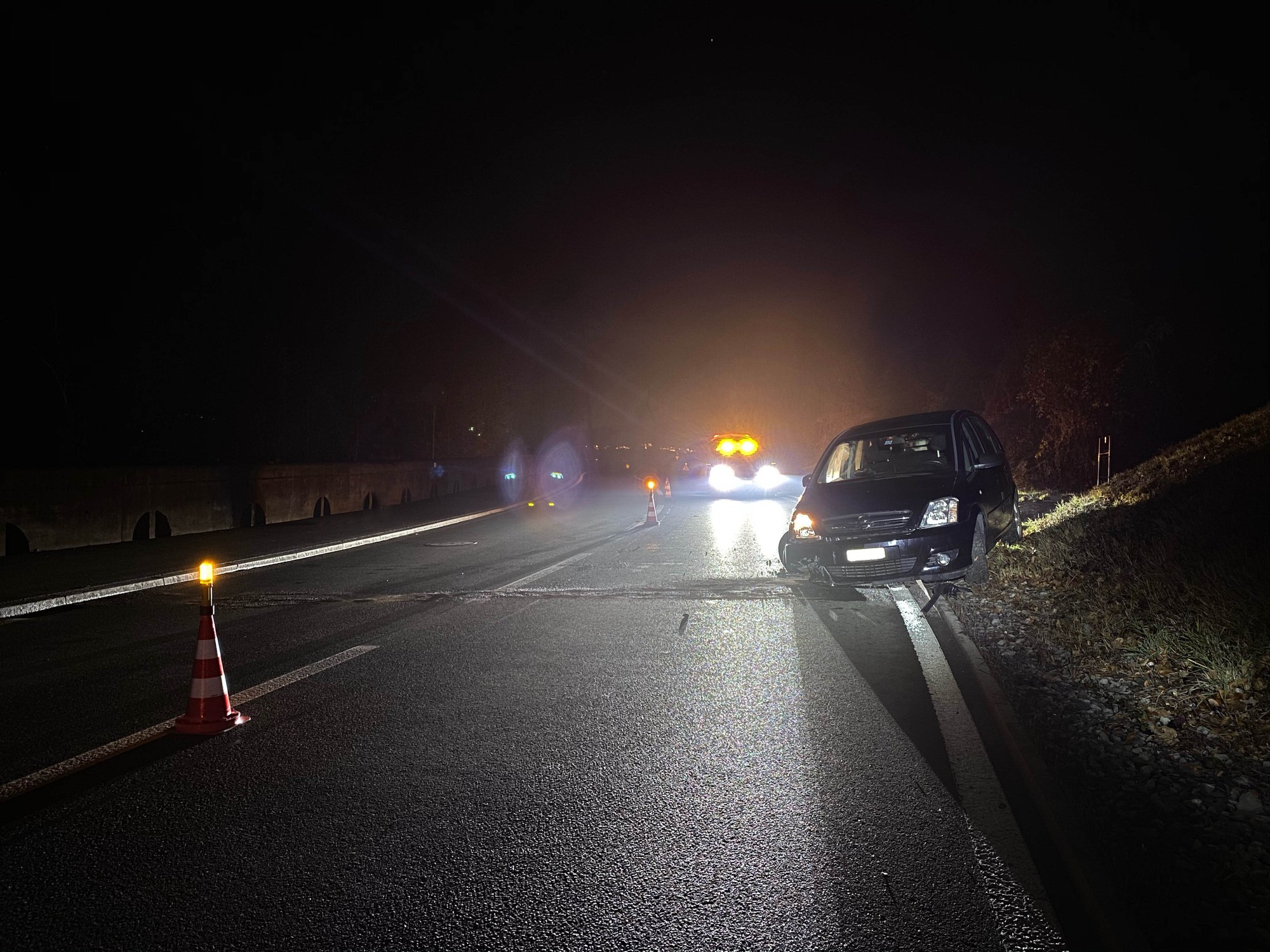 Während der Unfallaufnahme sowie der Fahrzeugbergung musste der Verkehr wechselseitig an der Unfallstelle vorbeigeführt werden.