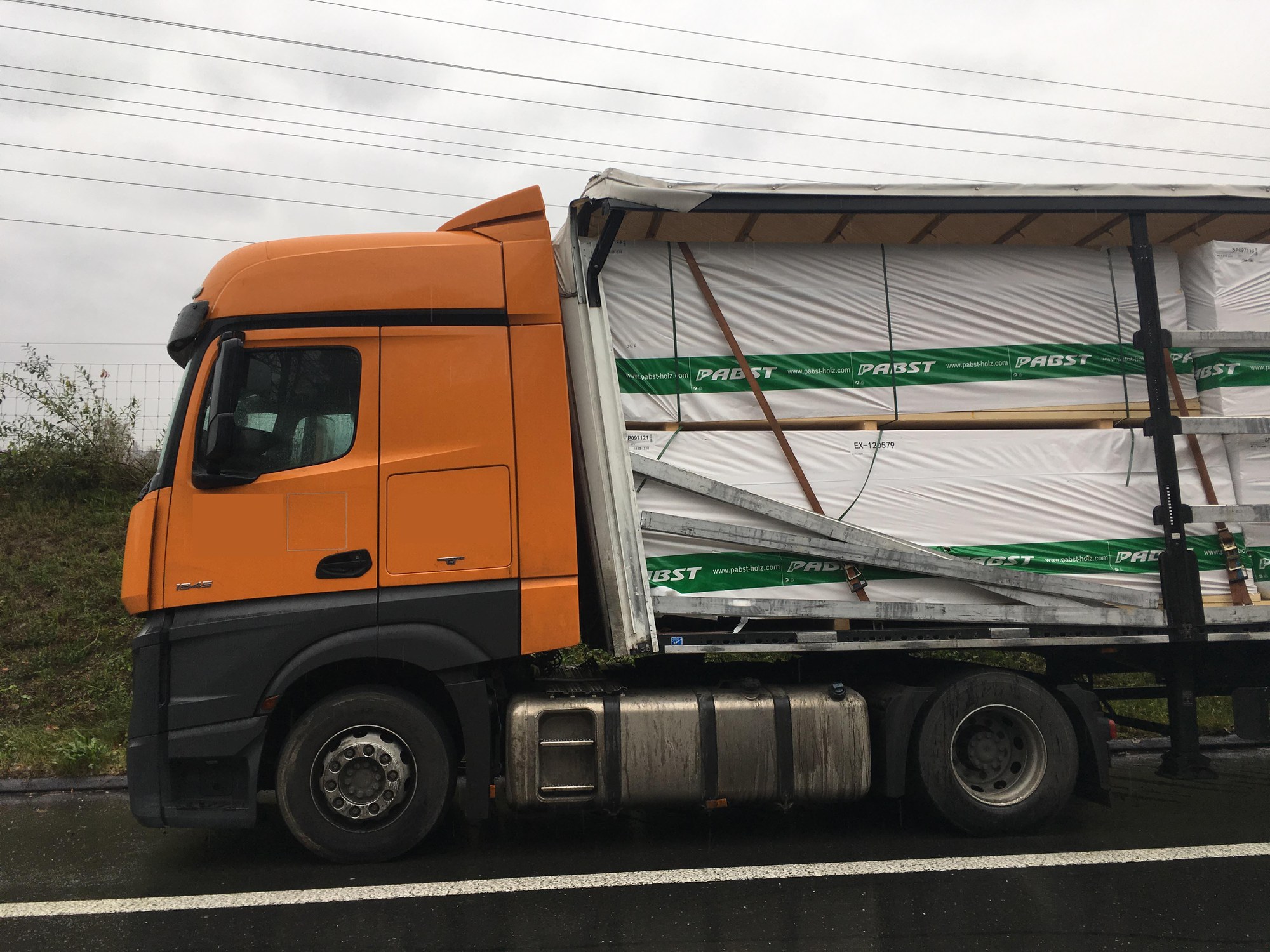Bei einem Bremsmanöver geriet die Holzladung eines Sattelmotorfahrzeugs ins Rutschen. Der Chauffeur blieb unverletzt. Die Einsatzkräfte stellten bei der Überprüfung der Betriebssicherheit am Fahrzeug zudem Mängel fest.