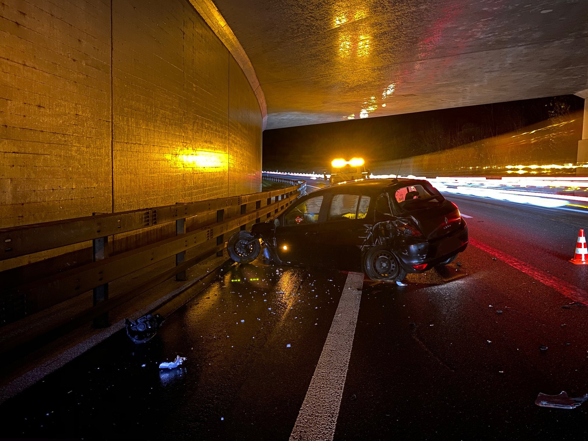 Ein 36-jähriger Autofahrer war am Dienstagabend (22. Dezember 2020), um 20:00 Uhr, auf dem Überholstreifen der Autobahn A4a in Richtung Luzern unterwegs. In der Blegikurve verlor er die Kontrolle über sein Fahrzeug, kam ins Schleudern und prallte auf der rechten Strassenseite in die Leiteinrichtung sowie die dortige Mauer. Von dort ging es wieder zurück auf den Überholstreifen, wo das Fahrzeug stark demoliert zum Stillstand kam.