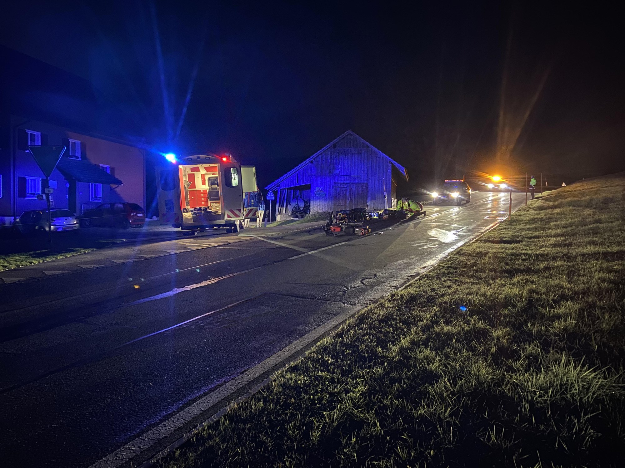Auf der Ratenstrasse ist es zu einem Zusammenstoss zwischen einem Auto und einem Motorfahrrad gekommen. Der Zweiradlenker wurde erheblich verletzt und mit der Rega ins Spital eingeliefert.