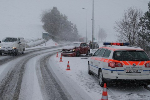 285 / Kanton Zug: Schneetreiben führt zu zahlreichen Verkehrsunfällen