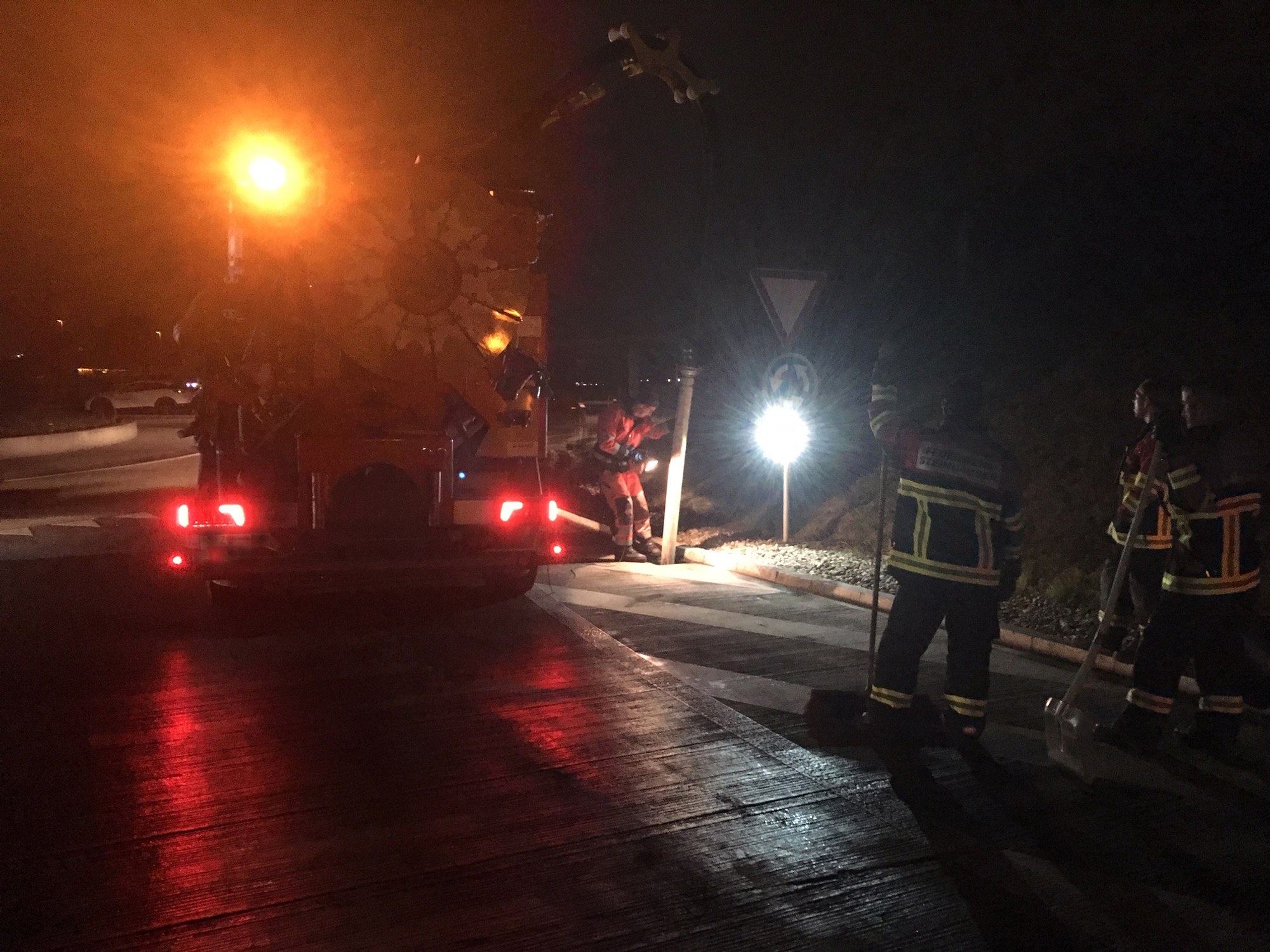 Um das Oel zu binden und die Strasse zu reinigen, standen die Feuerwehren von Steinhausen und Knonaueramt Süd sowie mehrere Putzmaschinen im Einsatz. Zusätzlich zu den Reinigungsarbeiten auf der Strasse, musste auch noch ein Abwasserschacht durch ein Kanalreinigungsunternehmen ausgepumpt werden.