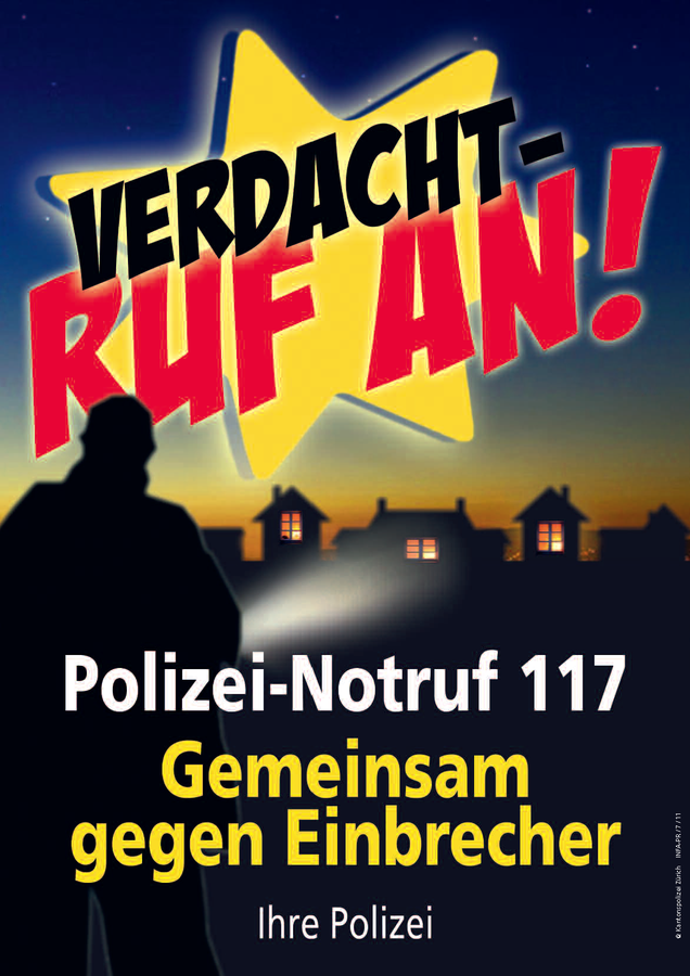 Die dunklen Wintermonate sind bei Einbrechern besonders beliebt. Im Schutz der Dunkelheit fühlen sie sich wohl. Die Polizei ist zurzeit vermehrt in den Quartieren unterwegs. Doch wir können nicht überall gleichzeitig sein. Deshalb sind wir auf Ihre Mithilfe angewiesen.