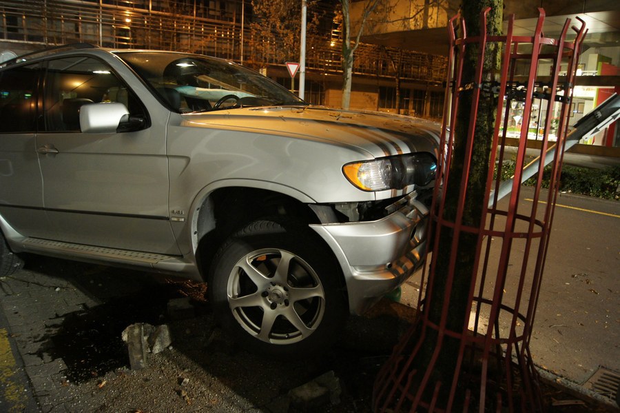 Am Samstagmorgen (10. Dezember 2011), kurz vor 04:00 Uhr, wollte eine Patrouille der Zuger Polizei auf der Göblistrasse in Zug einen auffällig fahrenden Personenwagen kontrollieren. Die 38-jährige Lenkerin ignorierte jedoch die Haltezeichen der Polizisten und versuchte sich der Kontrolle zu entziehen. Sie fuhr auf der Industriestrasse im innerortsbereich mit Geschwindigkeiten von bis 100 km/h in Richtung Stadtzentrum. Beim Versuch in die Poststrasse abzubiegen verlor die Personenwagenlenkerin die Herrschaft über ihr Fahrzeug und kollidierte mit einem Baum sowie Steinpöller und Abgrenzungsstangen am rechten Fahrbahnrand. Hier endete ihr Fluchtversuch. Die Frau wurde nur leicht im Gesicht verletzt und wurde vom Rettungsdienst Zug ambulant vor Ort behandelt. Bei der Überprüfung ihrer Fahrfähigkeit wurden Alkoholsymptome festgestellt. Ein vor Ort durchgeführter Atemlufttest verlief mit 1.35 Promillen positiv. Die Verunfallte musste sich im Spital einer Blutentnahme unterziehen und ihr Führerausweis auf der Stelle abgeben.