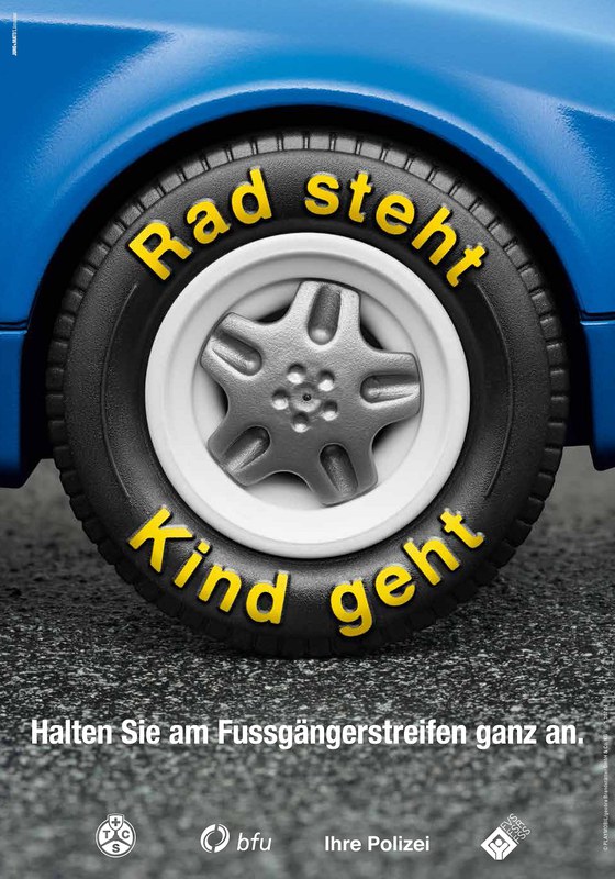 - Halten Sie vor dem Fussgängerstreifen vollständig an und geben Sie keine Handzeichen. Vermeiden Sie es, langsam rollend auf den Fussgängerstreifen zuzufahren. Die Kinder lernen, erst über die Strasse zu gehen, wenn das Fahrzeug stillsteht.